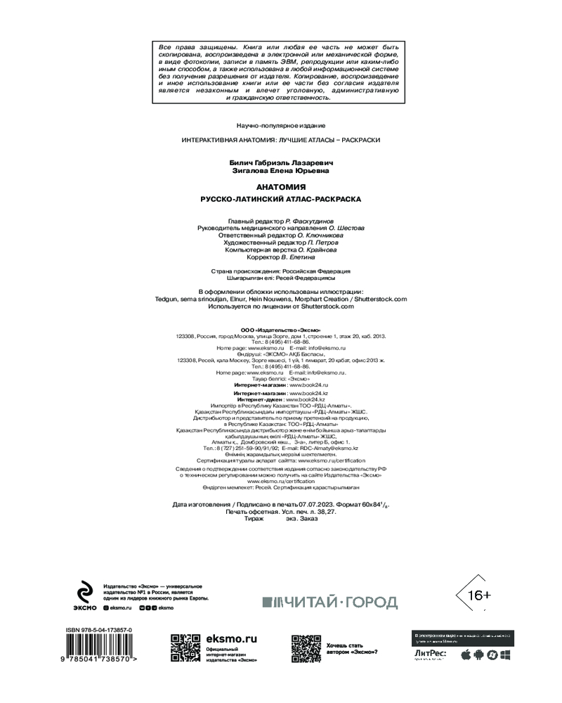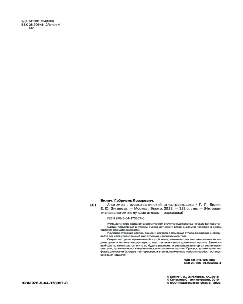 Анатомия: русско-латинский атлас-раскраскаЕлена Юрьевна Зигалова, Габриэль Лазаревич Билич В данный момент этот товар отсутствует в продаже. Возможно, у нас найдется аналогичный или похожий товар здесь. Серия: Интерактивная анатомия: лучшие атласы – раскраски Более 100 рисунков всех анатомических структур. Исчерпывающие научные сведения о теле человека. |