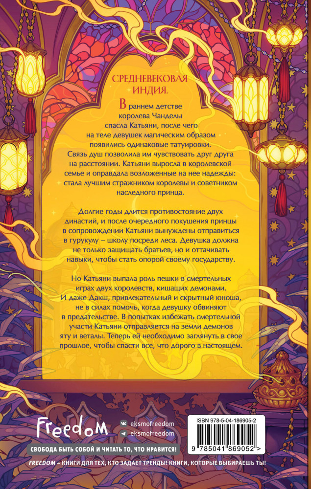 Но Катьяини выпала роль пешки в смертельных играх между двумя королевствами, кишащими демонами. И даже Дакш, привлекательный и скрытный юноша, не в силах помочь, когда девушку обвиняют в предательстве. В попытках избежать смертельной участи, Катьяини бежит на земли демонов яту и веталы. Теперь ей необходимо заглянуть в свое прошлое, чтобы спасти все что дорого в настоящем.
