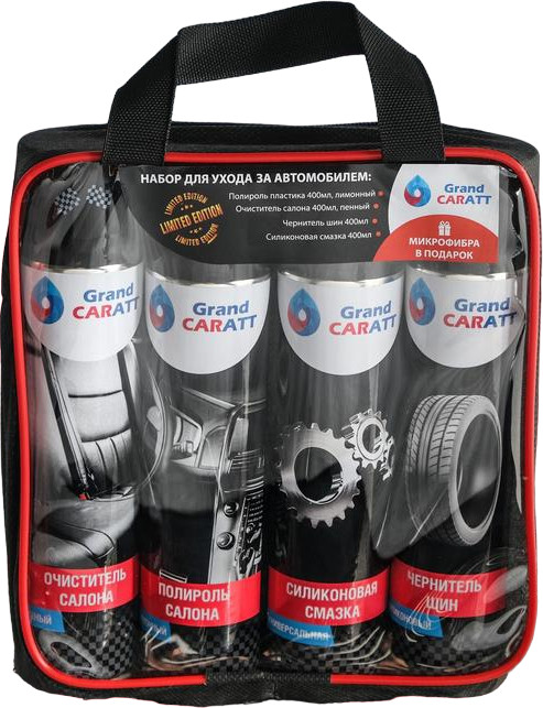 Grand Caratt Набор подарочныйВ данный момент этот товар отсутствует в продаже. Возможно, у нас найдется аналогичный или похожий товар здесь. Очиститель салона 400 мл, пенный, можно использовать для любых типов отделочных материалов в авто, кожа, велюр, алькантара. Специальный состав легко удаляет въевшиеся загрязнения. Очиститель устраняет неприятный запах и обладает антистатическим эффектом. Чернитель шин 400 мл, имеет антистатический и водоотталкивающий эффект, можно использовать для обработки шин при межсезонном хранении. Придаст матовый блеск, обновит цвет и улучшит вид резиновых деталей автомобиля: шин, ковриков, уплотнителей окон, дверей, багажника и т.п. Средство имеет приятный аромат. Силиконовая смазка 400 мл, незаменимый помощник в зимний период, используется для обработки резиновых уплотнителей, исключает примерзание дверей, устраняет скрип. |