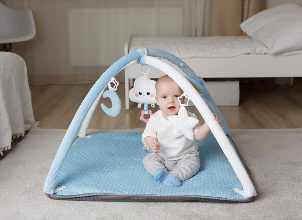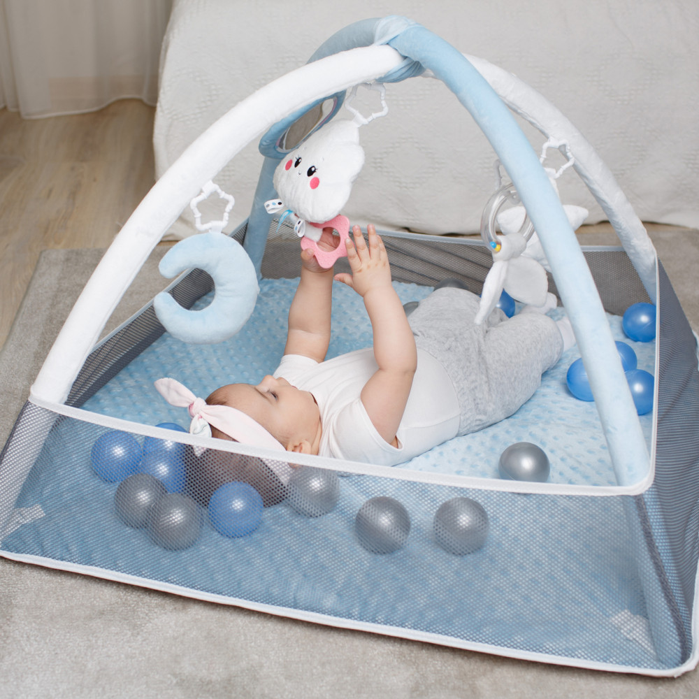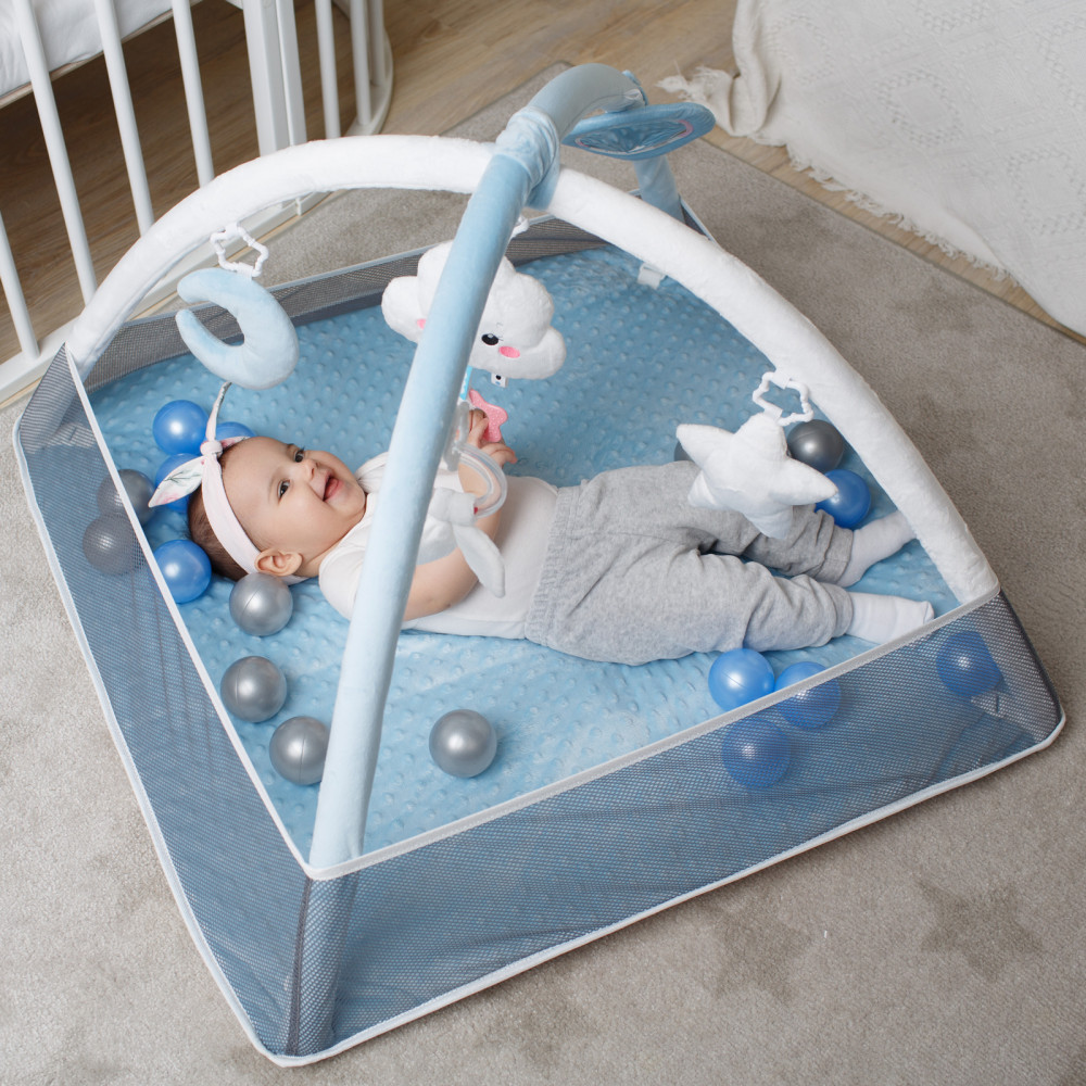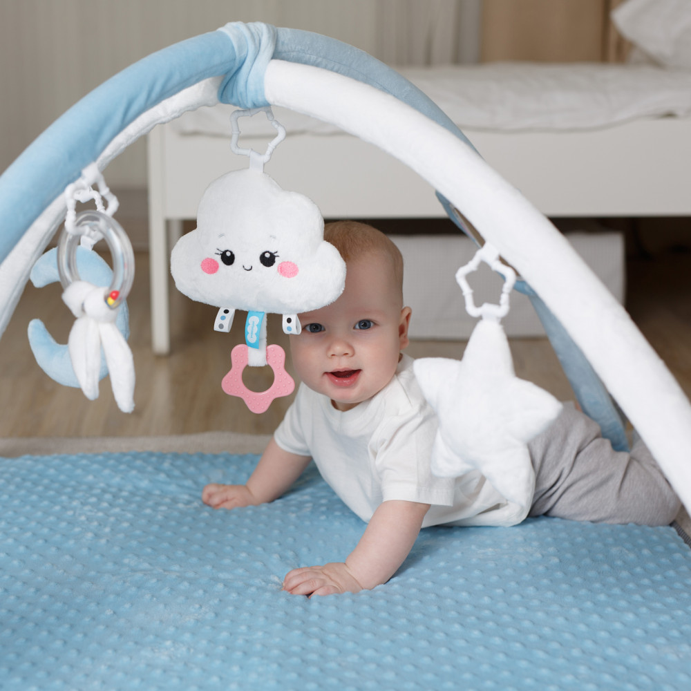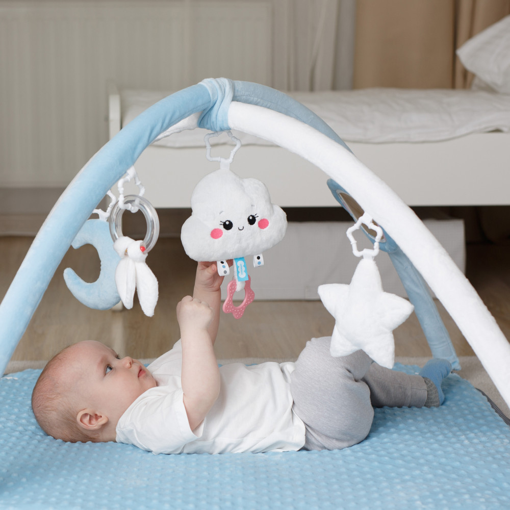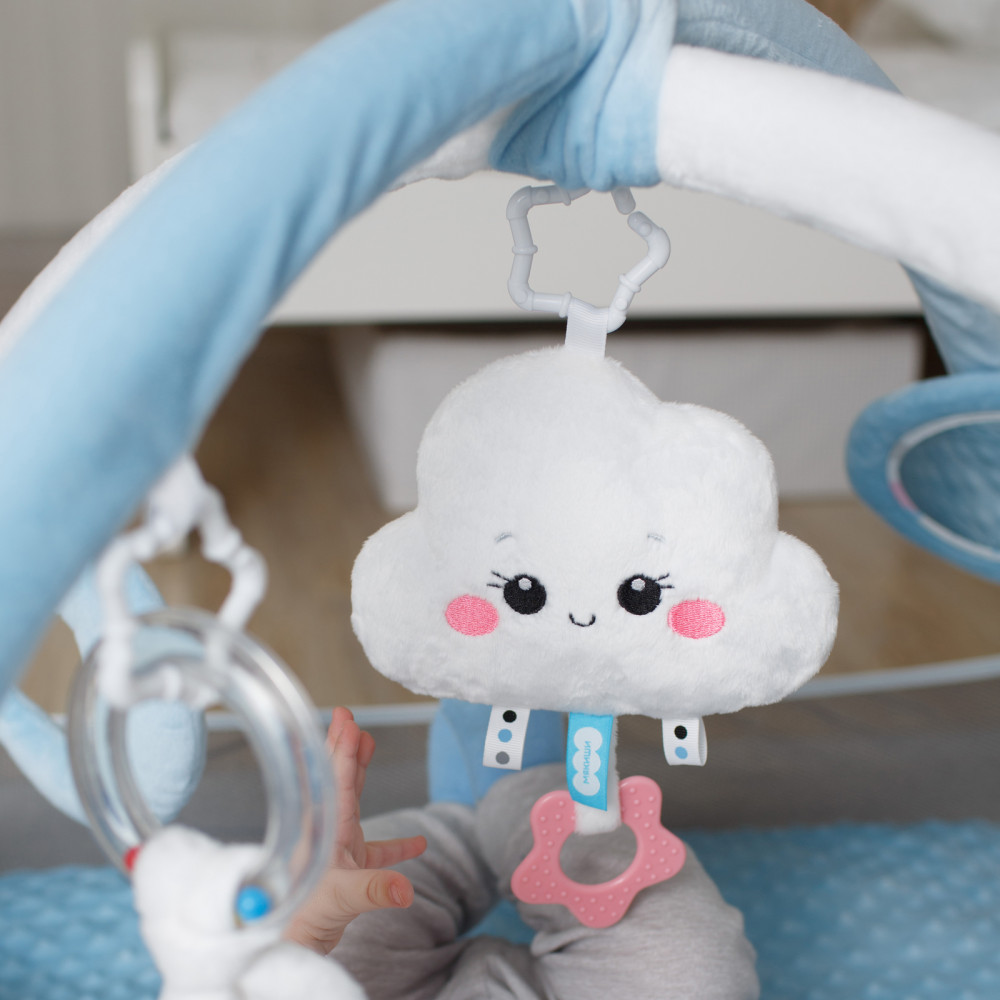 Мякиши Коврик с дугами «Облачко»В данный момент этот товар отсутствует в продаже. Возможно, у нас найдется аналогичный или похожий товар здесь. Детский игровой коврик «Облачко» подарит малышу много приятных моментов. Ребёнок заинтересуется пятью различными по форме и текстуре подвесками, которые можно снять и использовать в кроватке, коляске, взять с собой в дорогу или подвесить на автокресло. Погремушка в виде облачка с грызунком-прорезывателем будет особенно актуальна в период активного роста зубов. Мягкий голубой полумесяц приятен на ощупь и способствует развитию мелкой моторики. Безопасное зеркальце позволит изучить себя. А звездочка с пищалкой и колечко с хрустящими листиками поспособствует в изучении звуков. |