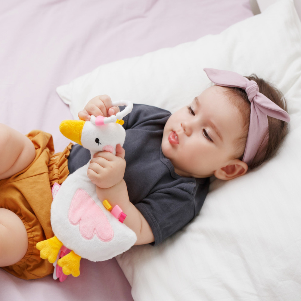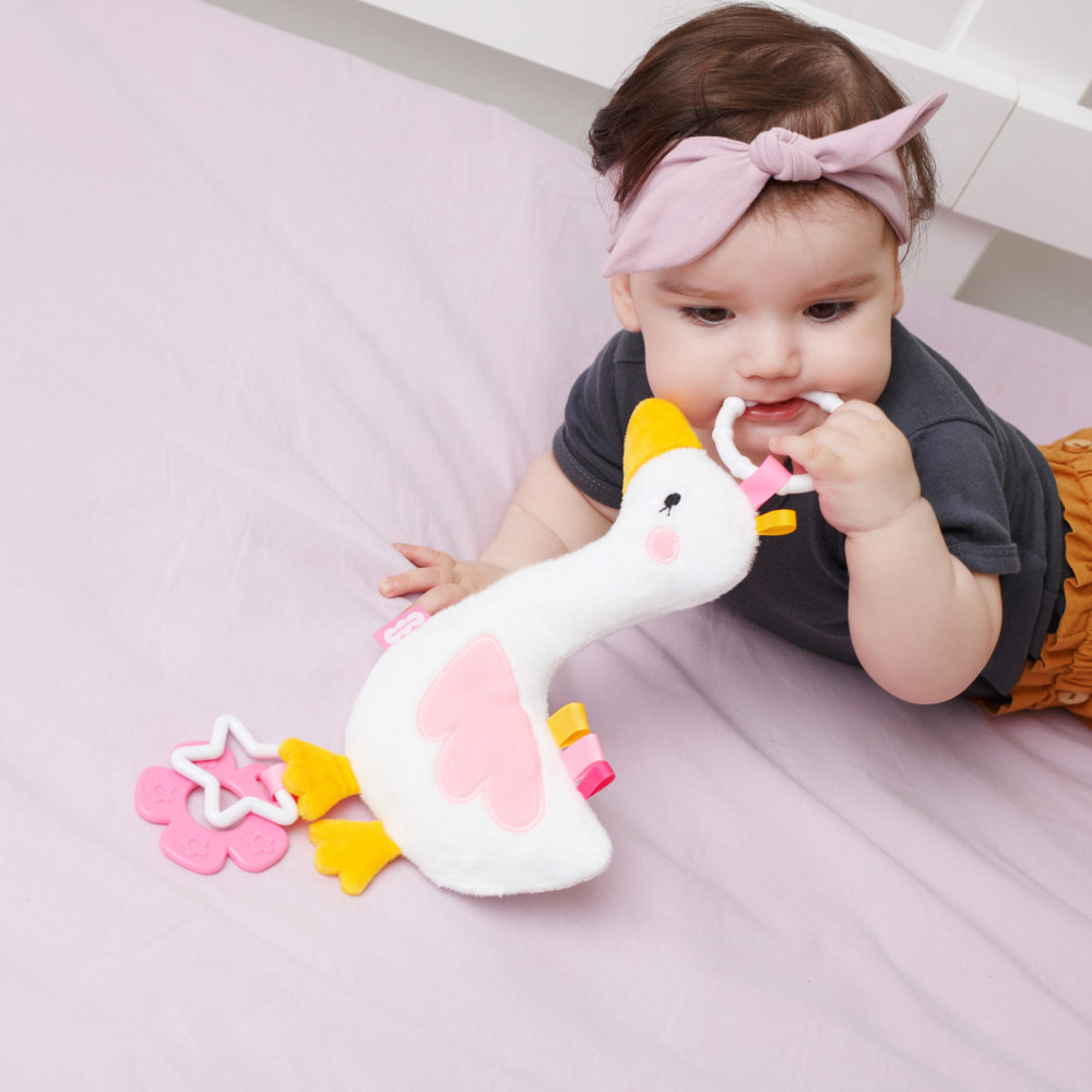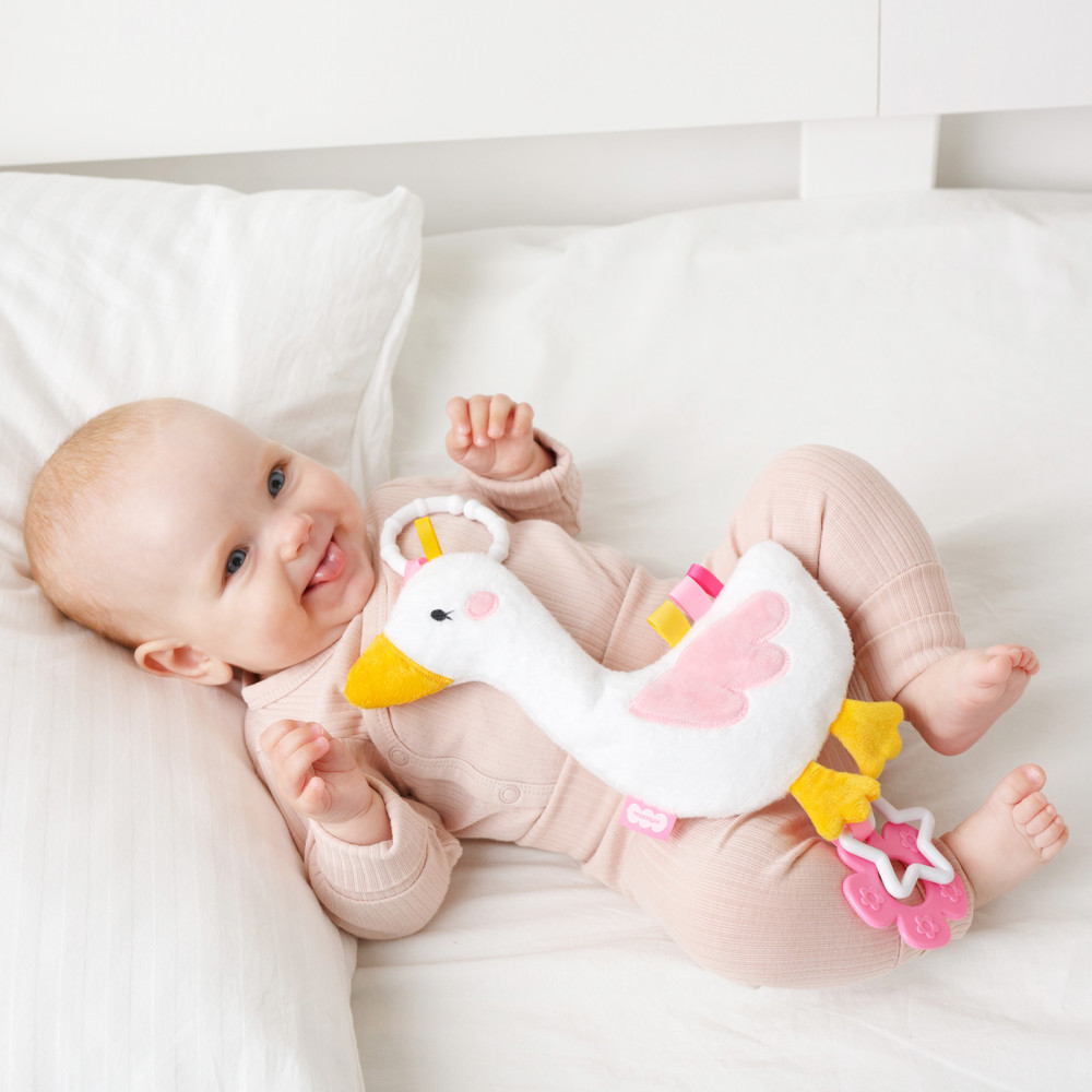 💳 Оплатить за товар можно при получении 🇰🇿 Есть бесплатная доставка по Казахстану от 1 дня 🎁 Копите бонусы с каждой покупки Занимательная мягкая развивающая игрушка подвеска хрустящий Гусь с петельками станет первой любимой вещью для малыша. Ваш кроха будет с удовольствием шуршать и изучать не только образ птицы, но и развивать тактильные ощущения, знакомясь с фактурой тканевых материалов, ведь это еще и шуршащая мягкая игрушка. Занятия с ярким фигурным предметом — как развивашки для детей — способствуют более раннему развитию мозга, остроты зрения и способности фокусироваться на предметах, развивает внимание, поле зрения, улучшает цветовосприятие и даже успокаивает ребенка в периоды перевозбуждения. |
