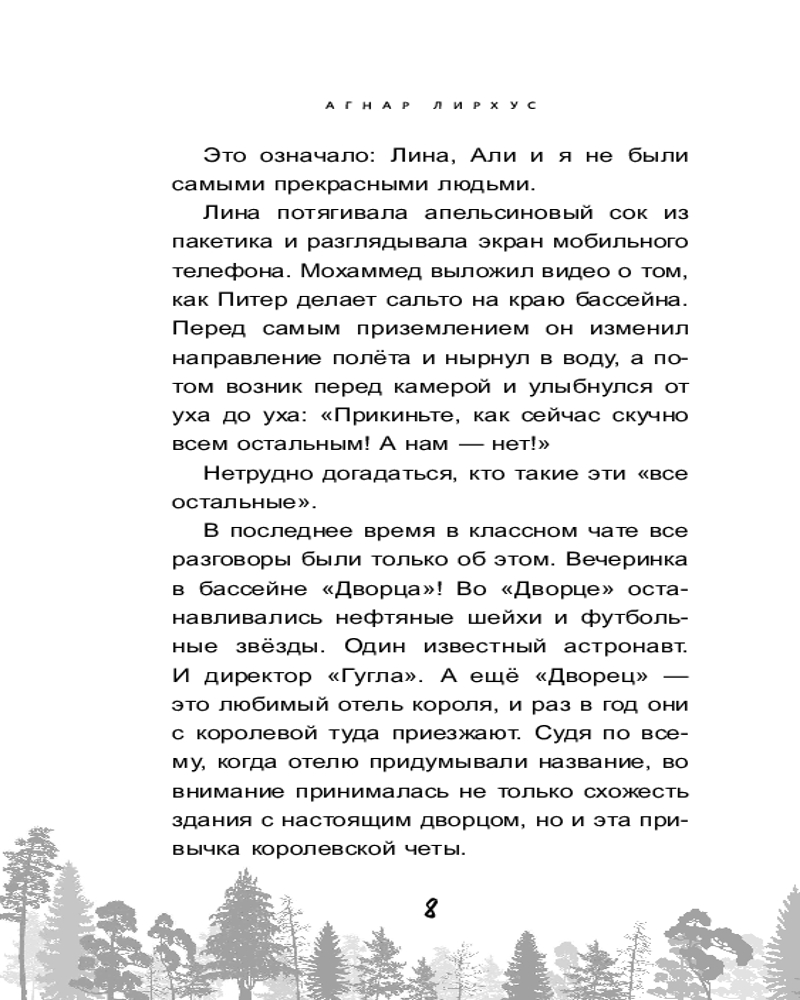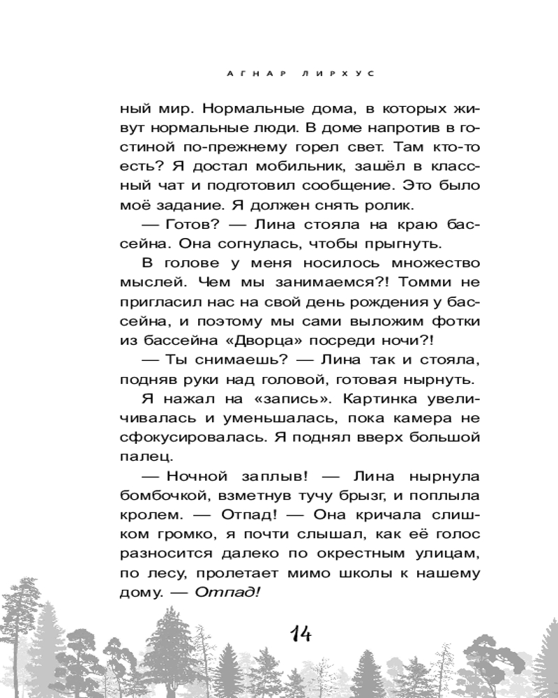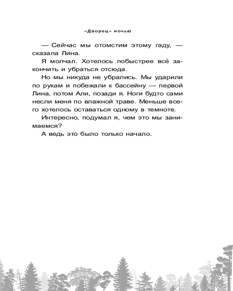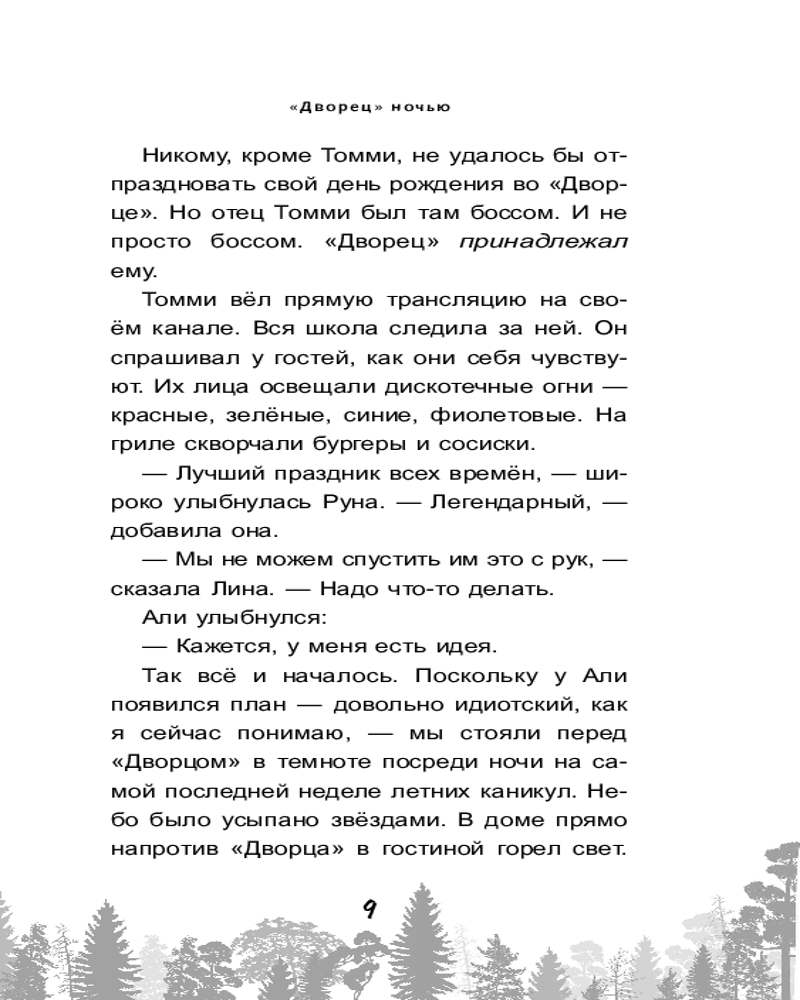 Серия: Взгляд во тьму. Триллеры для подростков Перед вами новая книга для подростков! Увлекательная и пугающая смесь детектива и триллера по-скандинавски. Двенадцатилетний Тор ночью пробирается на территорию шикарного, похожего на дворец или старинный замок отеля — и начинает расследование его тайн. Это была идея Лины. «Давайте отомстим Томми!» — сказала она. И мы отомстили: поздним вечером тайно пробрались во «Дворец». Это самый знаменитый отель в городе, и именно здесь Томми справлял свой день рождения. Он позвал на праздник всех одноклассников — кроме нас... А теперь мы отправились сюда сами! Мы не хотели ничего плохого, нет. |