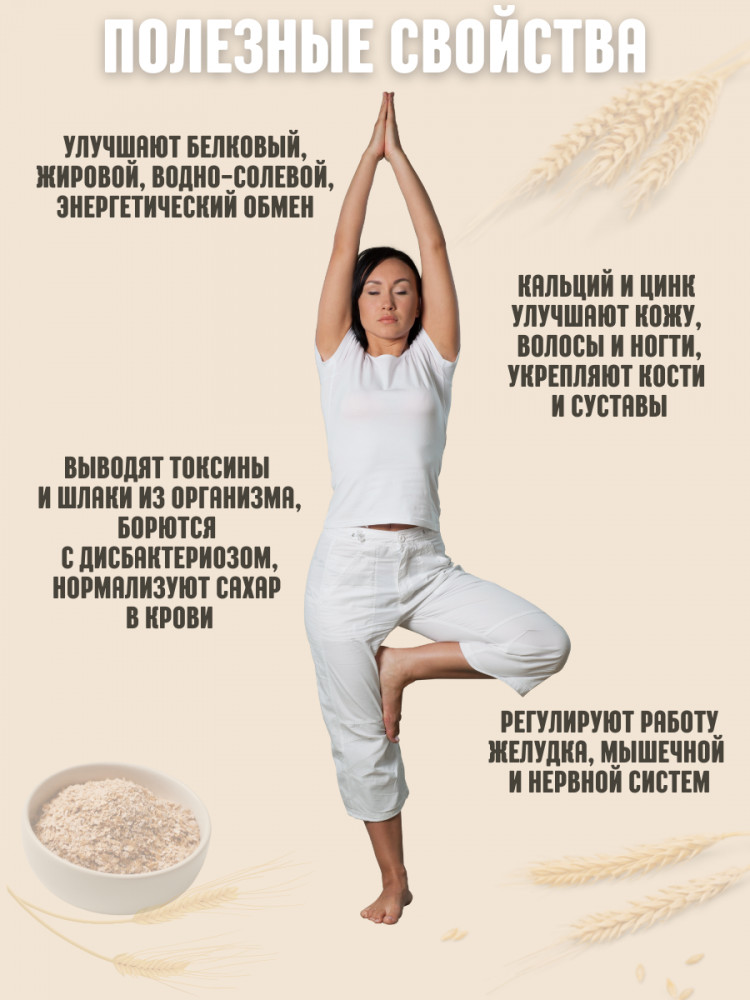 Овсяные отруби впитывают жидкость в 25-30 раз больше своего «сухого» объема. В желудке разбухшие отруби создают ощущение сытости. Далее, продвигаясь по кишечному тракту, отруби работают естественным адсорбентом и выводят скопившиеся токсины из организма. Мягко стимулируют перистальтику кишечника, налаживая его регулярную работу. Содержащаяся в овсяных отрубях клетчатка является отличной питательной средой для полезной микрофлоры кишечника.