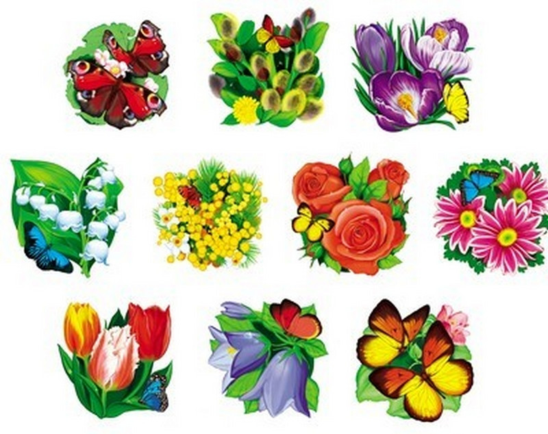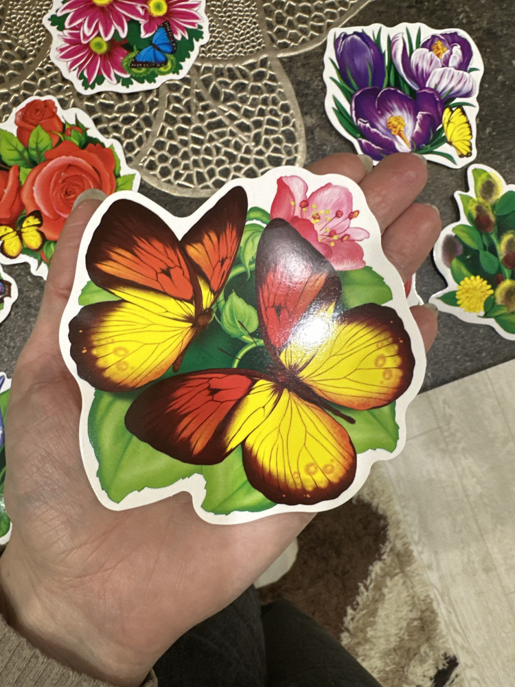 Комплект украшений на скотче «Весенний набор цветов»+6 яркая печать плотный картон компактный размер