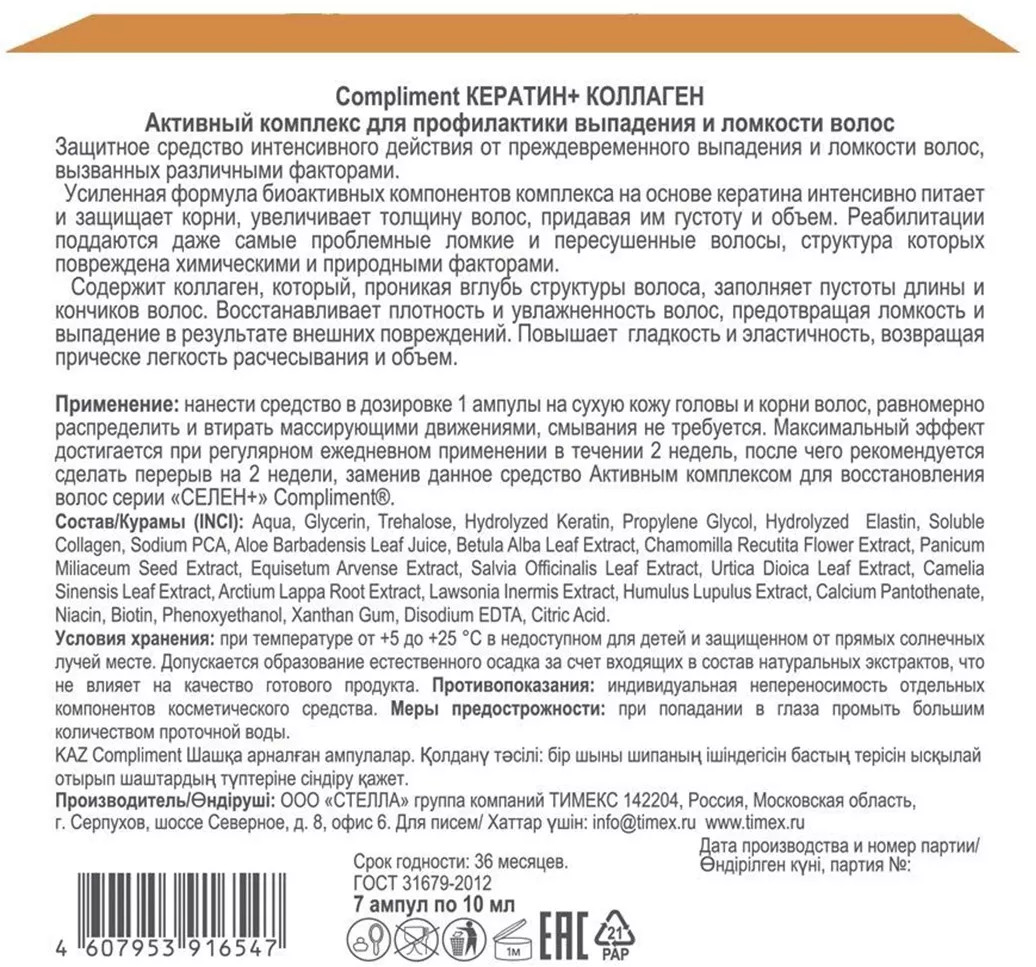 Compliment Лосьон для профилактики выпадения и ломкости волос «Селен и коллаген»-20% +77 аромат эффект соответствие