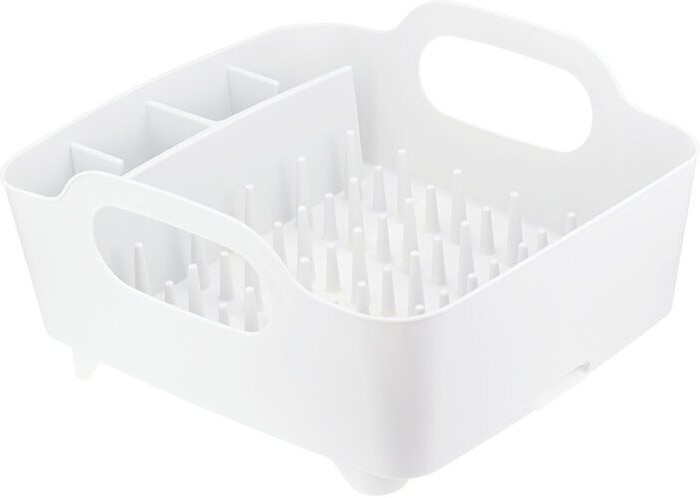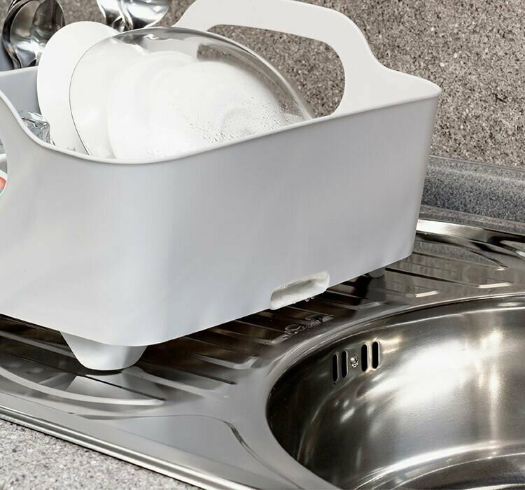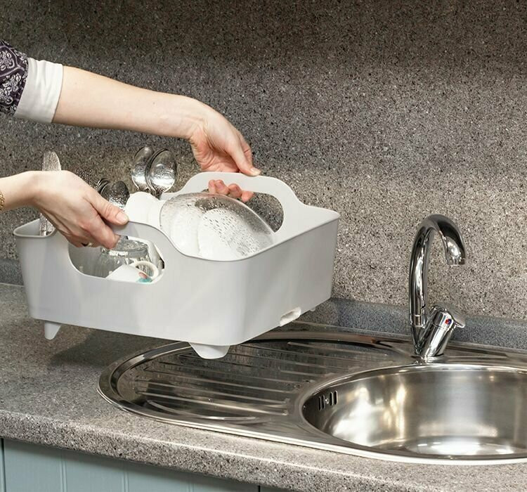 IDEA Сушилка для посудыВ данный момент этот товар отсутствует в продаже. Возможно, у нас найдется аналогичный или похожий товар здесь. Настольная сушилка для посуды Изли — крепкий и удобный в использовании аксессуар, который вместит в себя всё необходимое. Её удобно расположить рядом с раковиной и складывать в неё всю вымытую посуду. В сушилке для посуды предусмотрено отверстие для слива воды, которое можно направить сразу в мойку. Благодаря наклонной поверхности, вода сама вытекает из неё. В ней можно не только сушить, но и аккуратно хранить посуду и кухонные принадлежности. Удобные ручки позволяют с лёгкостью перемещать сушилку. Сушилка станет отличным решением на даче. Можно мыть в посудомоечной машине. |