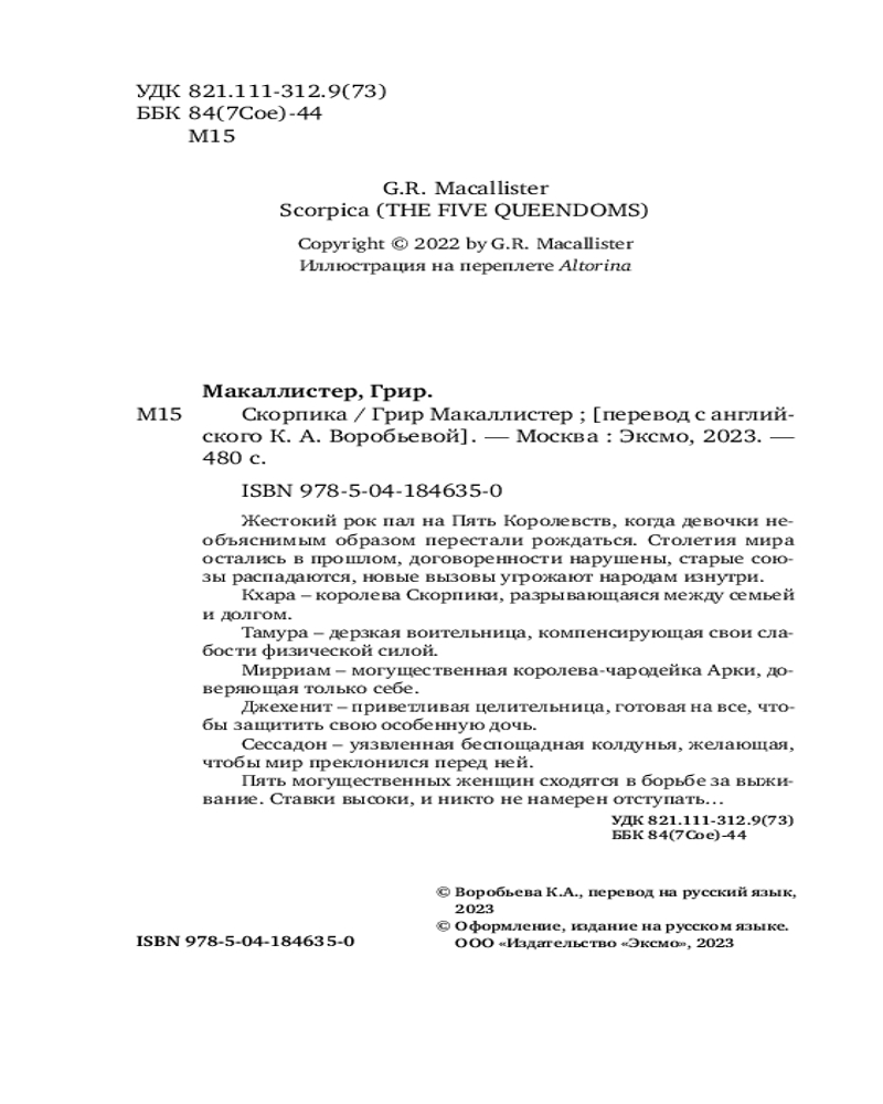 💳 Оплатить за товар можно при получении 🇰🇿 Есть бесплатная доставка по Казахстану от 1 дня 🎁 Копите бонусы с каждой покупки Серия: Young Adult. Магические миры Жестокий рок пал на Пять Королевств, когда девочки необъяснимым образом перестали рождаться. Столетия мира остались в прошлом, договоренности нарушены, старые союзы распадаются, новые вызовы угрожают народам изнутри. |