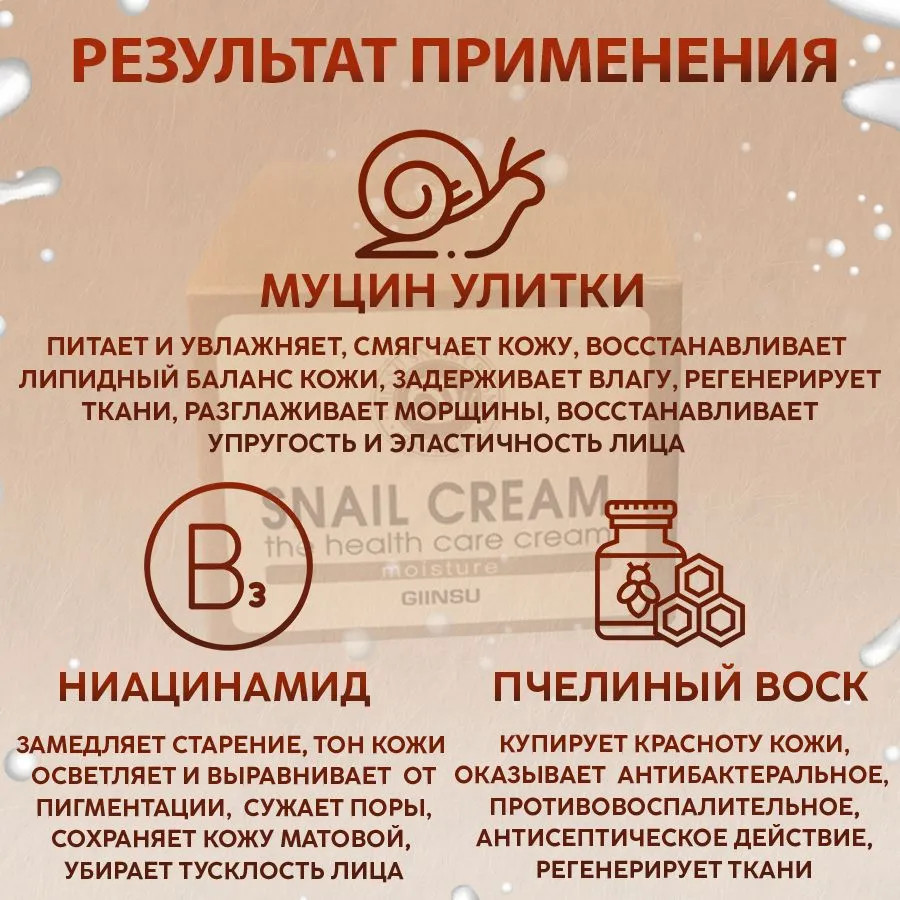 этот крем вовсе не отбеливающий, он ложится на кожу как тоналка цвета белой известки, все пушковые волоски окутывает белым цветом, ужасный эффект, смывается только мылом, одной водой эту побелку не получилось отмыть,очень жаль, ранее покупала улиточный, очень хороший. решила попробовать другой и разочаровалась.
