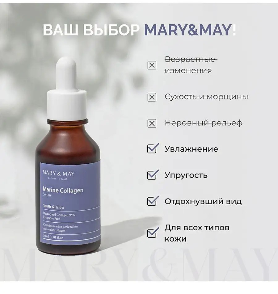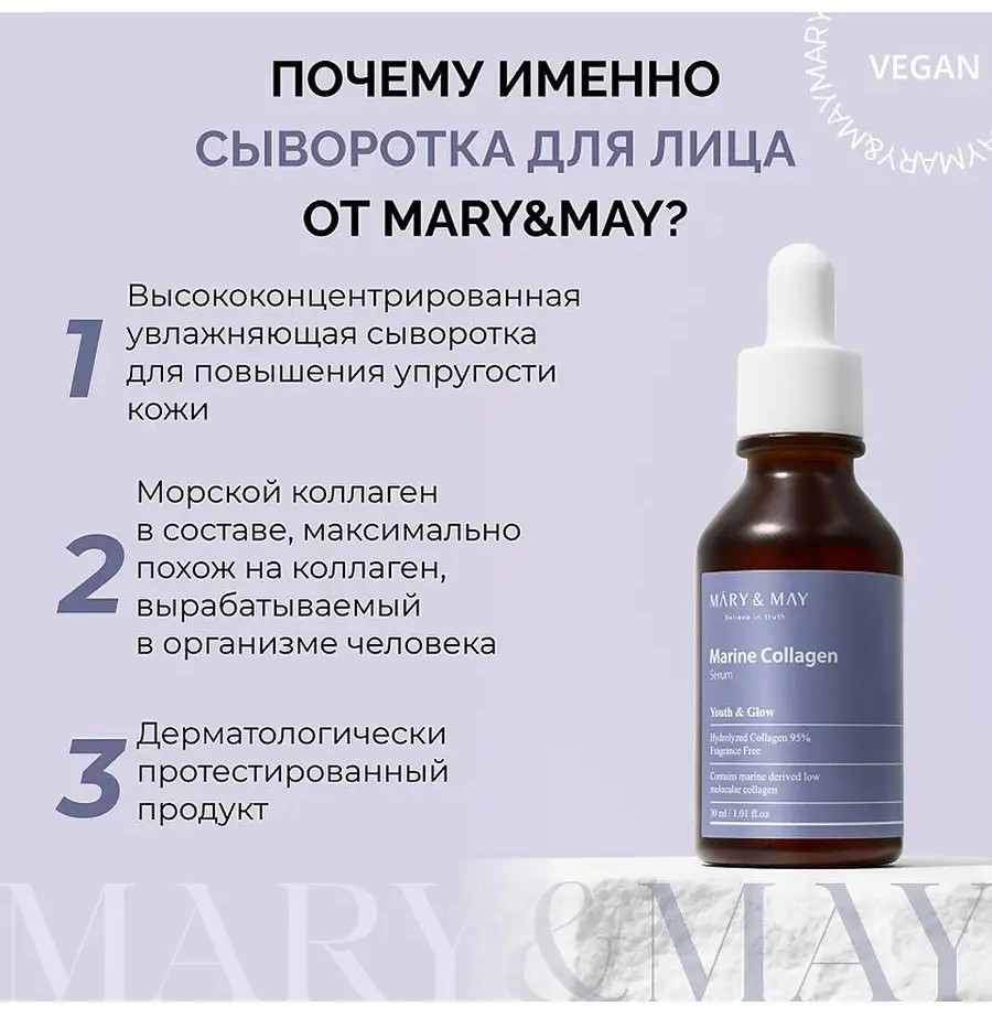 Mary&May Сыворотка для лица антивозрастная с коллагеном «Marine Collagen Serum»