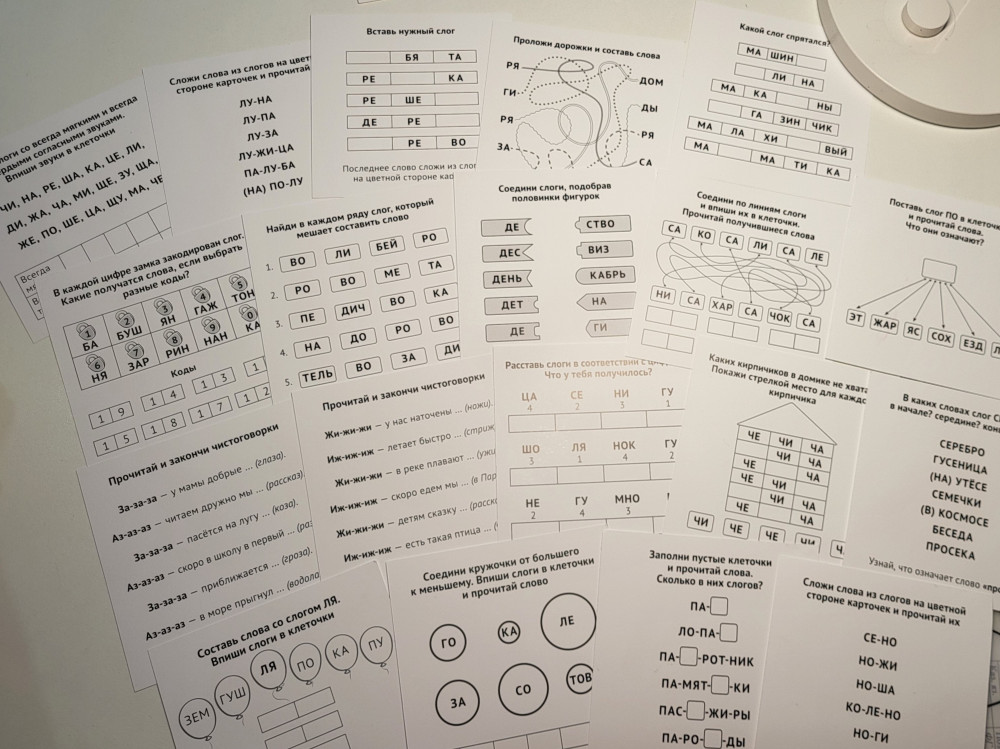 Набор понравился! Карточки сравнительно крупные (есть карточки другого производителя). Слоги конечно не все((( Хотелось бы карточки на все слоги. А так интересные задания с обратной стороны)