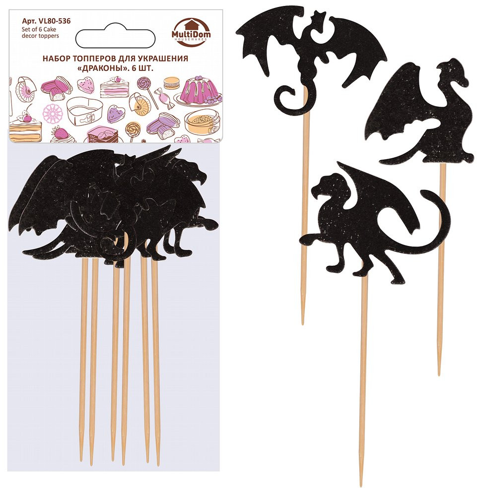 Мультидом Трейдинг Набор топперов «Драконы»-25% +9 милые бумажные на шпажке