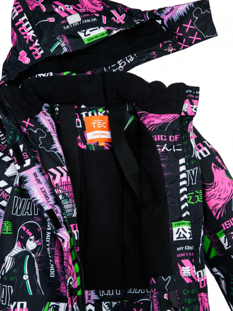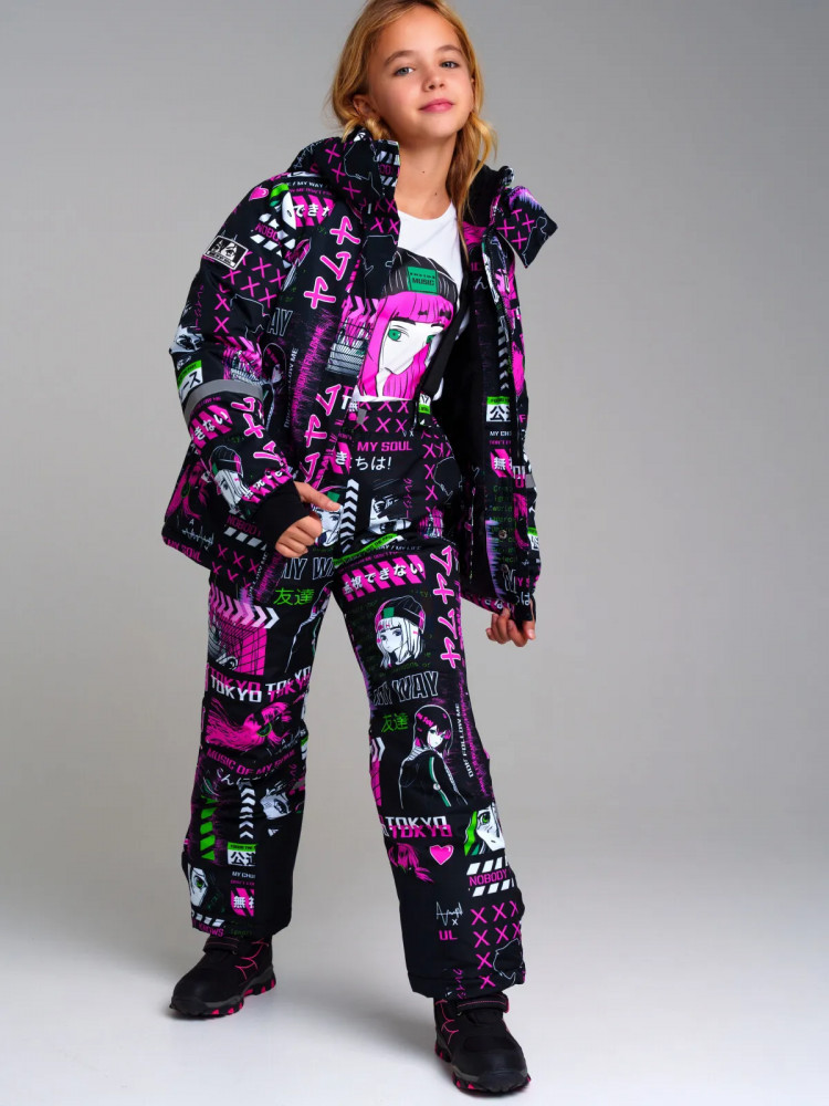 Плотность наполнителя: куртка — 200 г/м², брюки — 150 г/м². Температурный режим является рекомендованным, необходимо учитывать уровень активности ребенка и многослойность поддевочной одежды.