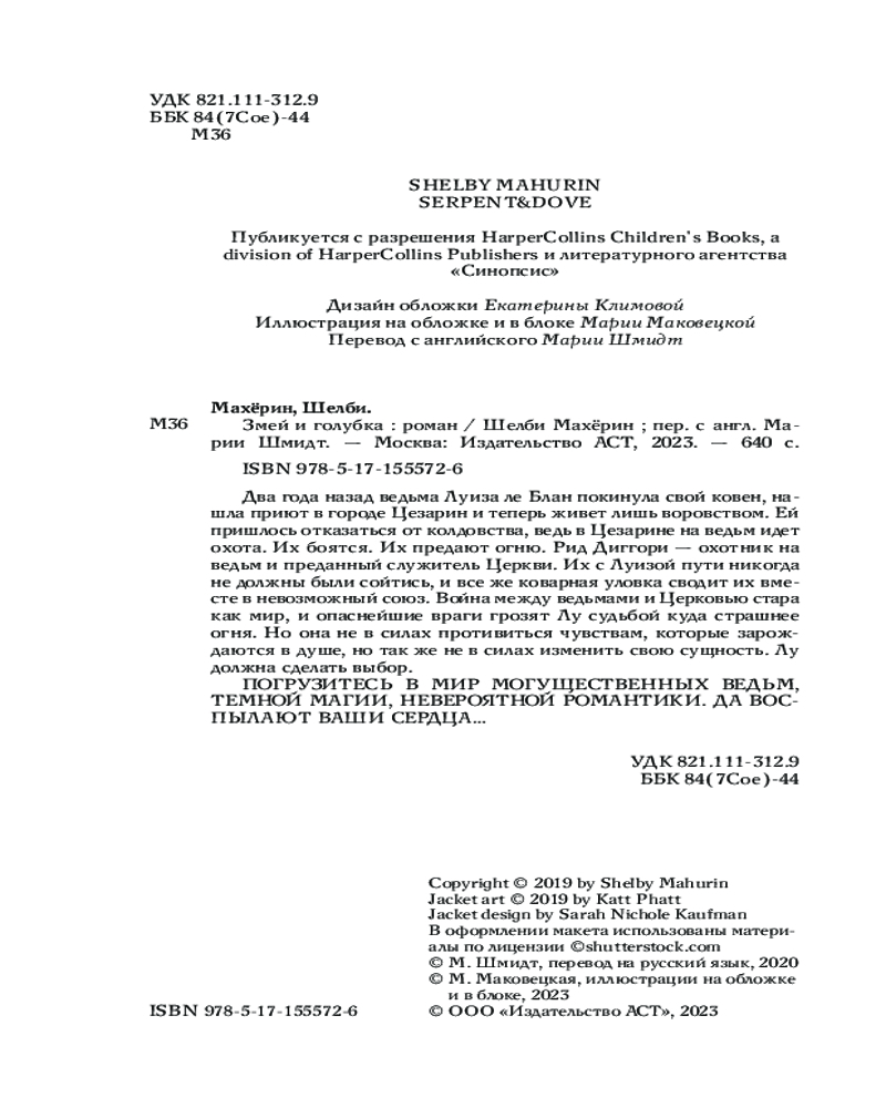 💳 Оплатить за товар можно при получении 🇰🇿 Есть бесплатная доставка по Казахстану от 1 дня 🎁 Копите бонусы с каждой покупки Серия: Mainstream. Фэнтези. Подарочная Два года назад ведьма Луиза ле Блан покинула свой ковен, нашла приют в городе Цезарин и теперь живет лишь воровством. Ей пришлось отказаться от колдовства, ведь в Цезарине на ведьм идет охота. Их боятся. Их предают огню. Рид Диггори — охотник на ведьм и преданный служитель Церкви. Их с Луизой пути никогда не должны были сойтись, и все же коварная уловка сводит их вместе в невозможный союз. Война между ведьмами и Церковью стара как мир, и опаснейшие враги грозят Лу судьбой куда страшнее огня. Но она не в силах противиться чувствам, которые зарождаются в душе, но так же не в силах изменить свою сущность. Лу должна сделать выбор. |