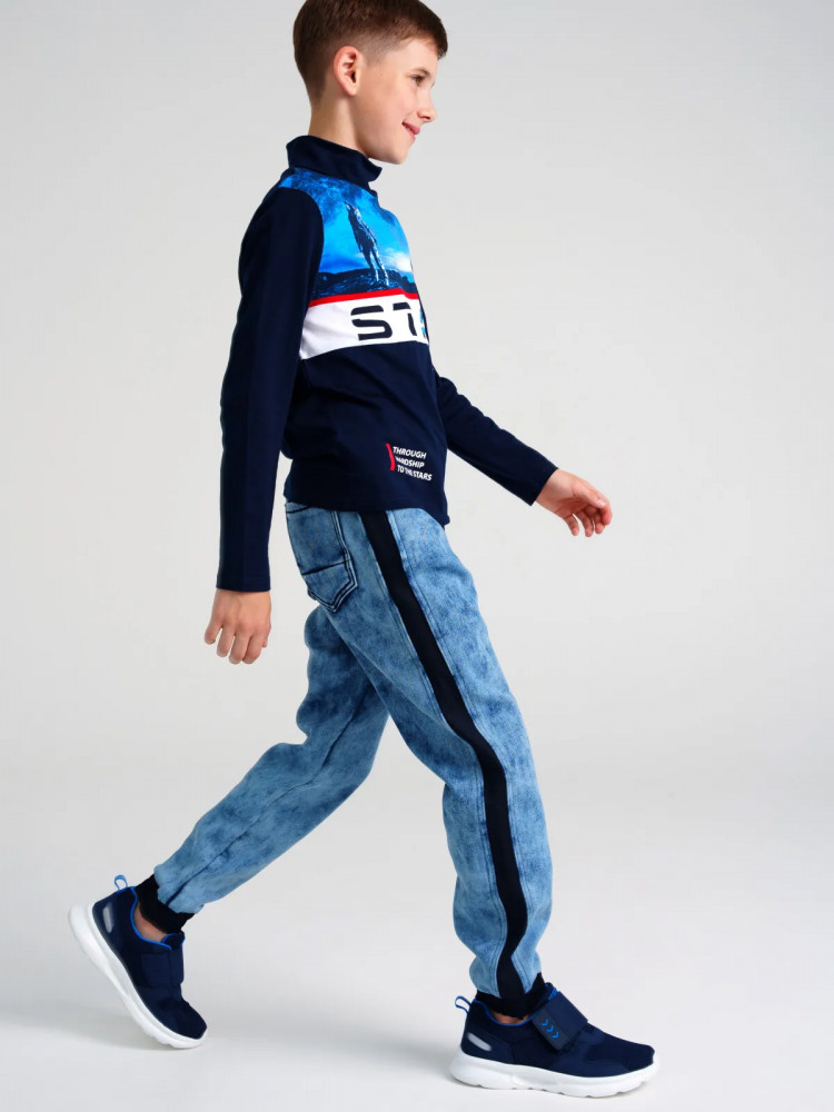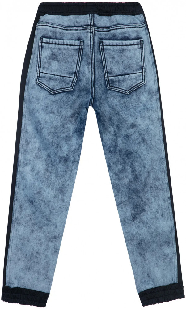 Джинсы, утепленные флисом. Посадка comfort fit — свободный крой брючин. Эластичный пояс со шнурком. Манжеты на резинке.