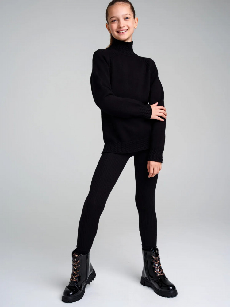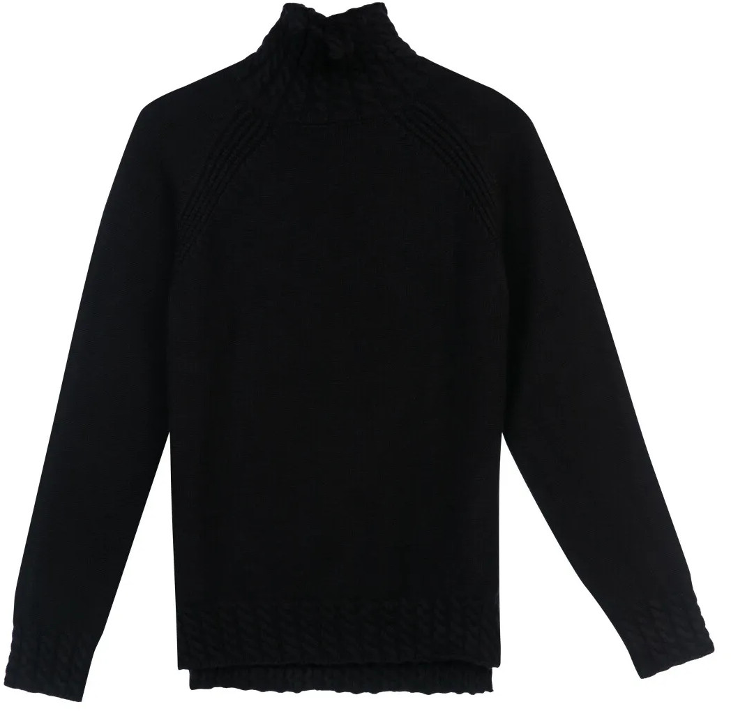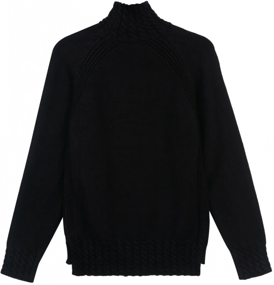 Свитер из вязаного трикотажа. Высокое содержание вискозы 50%. Вискоза отличается высокой гигроскопичностью — она впитывает влагу и отлично сохраняет тепло. Воротник-стойка. Горловина, манжеты и низ изделия с переплетением «косичка». Посадка comfort fit — свободный крой.