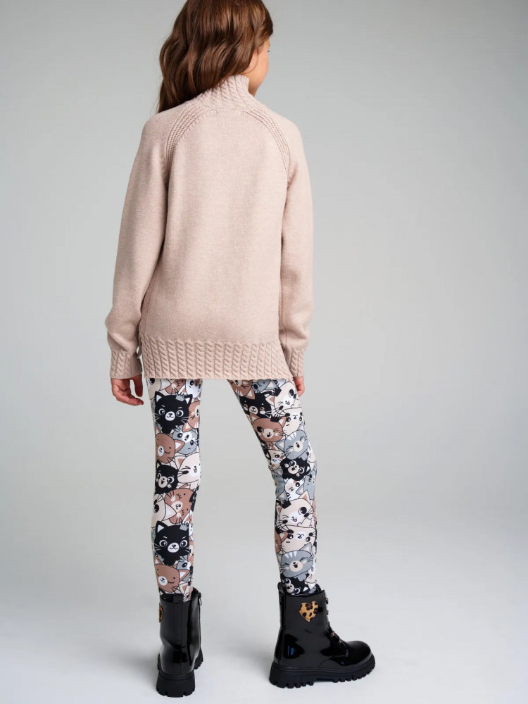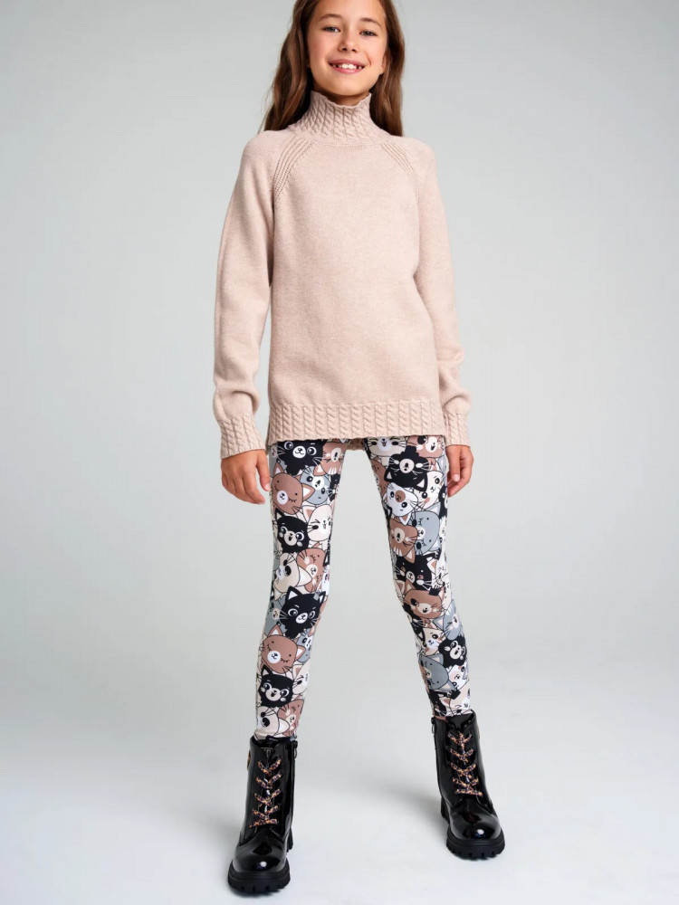 Леггинсы из качественного эластичного трикотажа джерси. Высокое содержание хлопка 95%. Благодаря наличию эластана в составе ткани изделие держит форму и проще в уходе. Пояс-резинка.