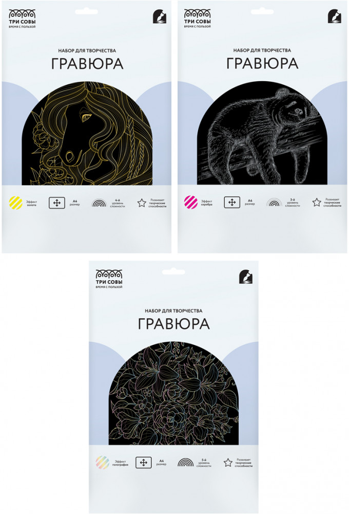 Набор гравюр — это увлекательный, популярный, а главное несложный вид творчества, который будет интересен не только детям, но и взрослым. В набор входит основы с эффектом серебра, золота, голографии формата А4, штихель и крепление на стену.