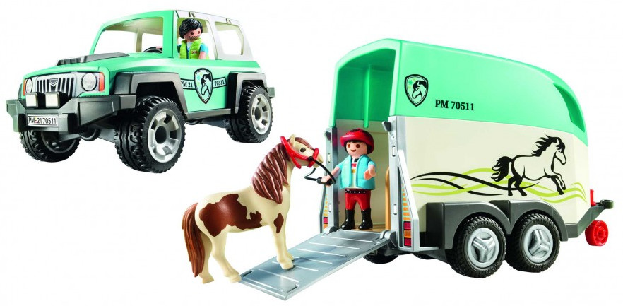 Playmobil Конструктор «Джип с трейлером для лошади»В данный момент этот товар отсутствует в продаже. Возможно, у нас найдется аналогичный или похожий товар здесь. Серия: Конный клуб У пони возникла необходимость обратиться к ветеринару, её нужно перевезти в специальном прицепе. Мальчик осторожно ведет свою пони по пандусу в трейлер, складывает пандус и прицеп прикрепляют к автомобилю. Водитель уезжает осторожно — пони нечего бояться. |