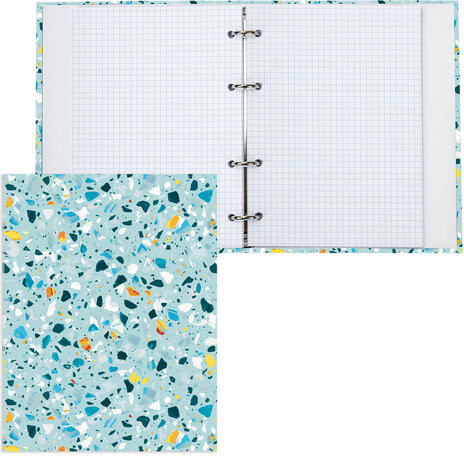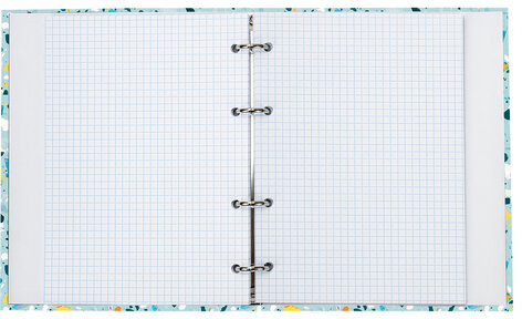 Удобная практичная тетрадь для учебы и работы со сменным блоком и твердой ламинированной обложкой. Блок состоит из 120 листов офсетной бумаги белого цвета плотностью 60 г/м2. Линовка — клетка. Жесткая книжная обложка выполнена из яркого переплетного картона и покрыта глянцевой пленкой. Формат А5 является стандартным и обеспечивает комфортное ношение в рюкзаке/ранце или папке. Оборудована кольцевым механизмом с 4-мя кольцами для подшивки сменных блоков, что позволит носить на учебу/работу всего одну тетрадь с возможностью добавлять и менять листы.