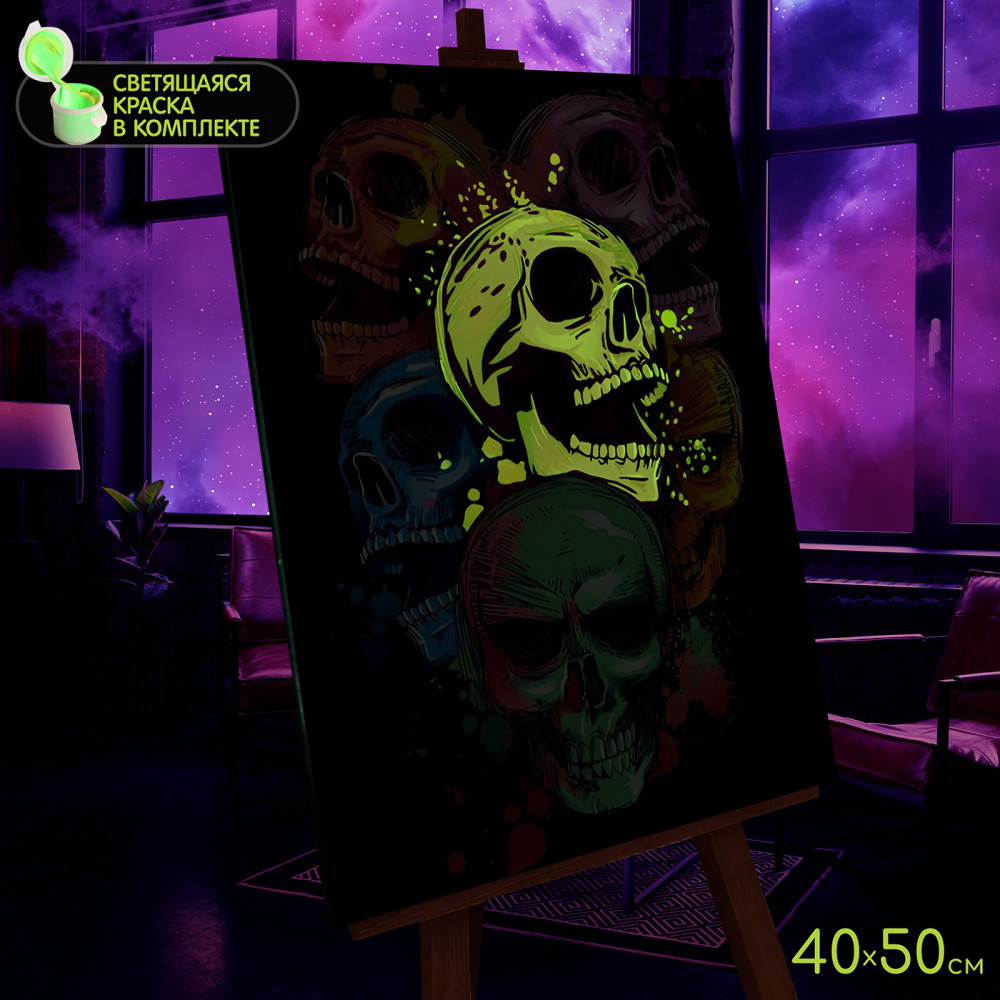 💳 Оплатить за товар можно при получении 🇰🇿 Есть бесплатная доставка по Казахстану от 1 дня 🎁 Копите бонусы с каждой покупки Картина по номерам со светящейся краской 40×50 Поп Арт черепа — это набор для творчества с помощью которого, используя краски и кисть, можно нарисовать потрясающую картину, даже не обладая художественными навыками. |