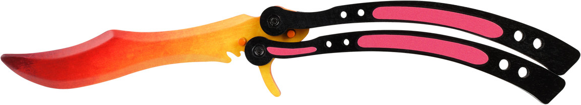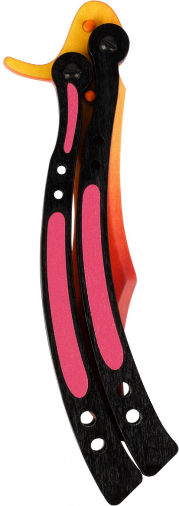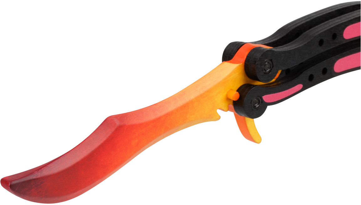 Деревянный нож порадует поклонников компьютерных игр своим высоким качеством и яркими скинами. Нож Бабочка положит начало коллекции игрового оружия или будет дополнением к уже существующей. Изделие абсолютно безопасно, острие ножа затуплено, края лезвия сглажены и закруглены. Можно спокойно играть и тренироваться, не беспокоясь о нанесении телесных повреждений. Игрушечное оружие изготавливается в России из натуральных материалов (березовая фанера) с преобладанием ручного способа производства.