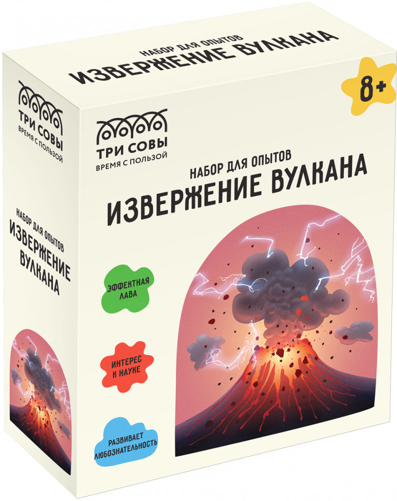 В процессе опыта слепите из кинетического песка собственный вулкан и устройте яркое, красочное извержение лавы с помощью реагентов.