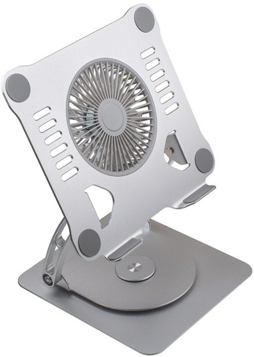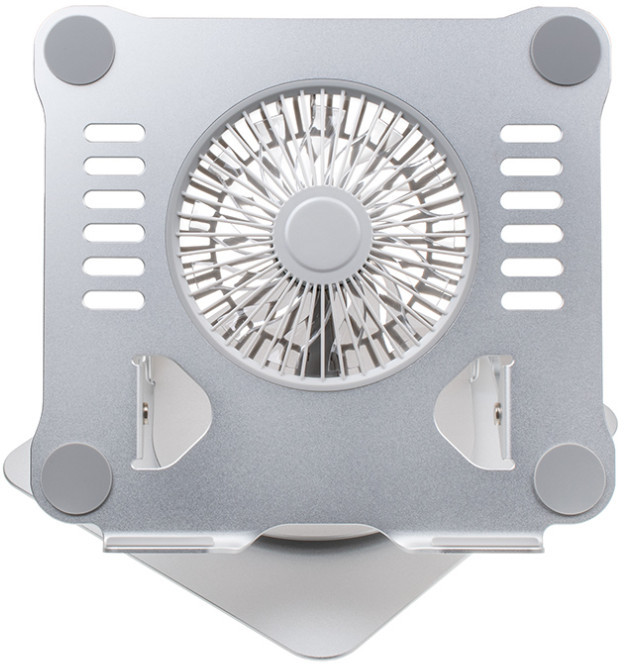 Охлаждающая подставка-трансформер для ноутбука, планшета или смартфона со встроенными вентилятором, максимально усиленная конструкция из алюминиевого сплава. Все узлы регулировки металлические, утяжеленное основание с противоскользящими ножками и поворотной платформой на 360 гр., прочная конструкция позволяет выдержать вес до 20 кг. |