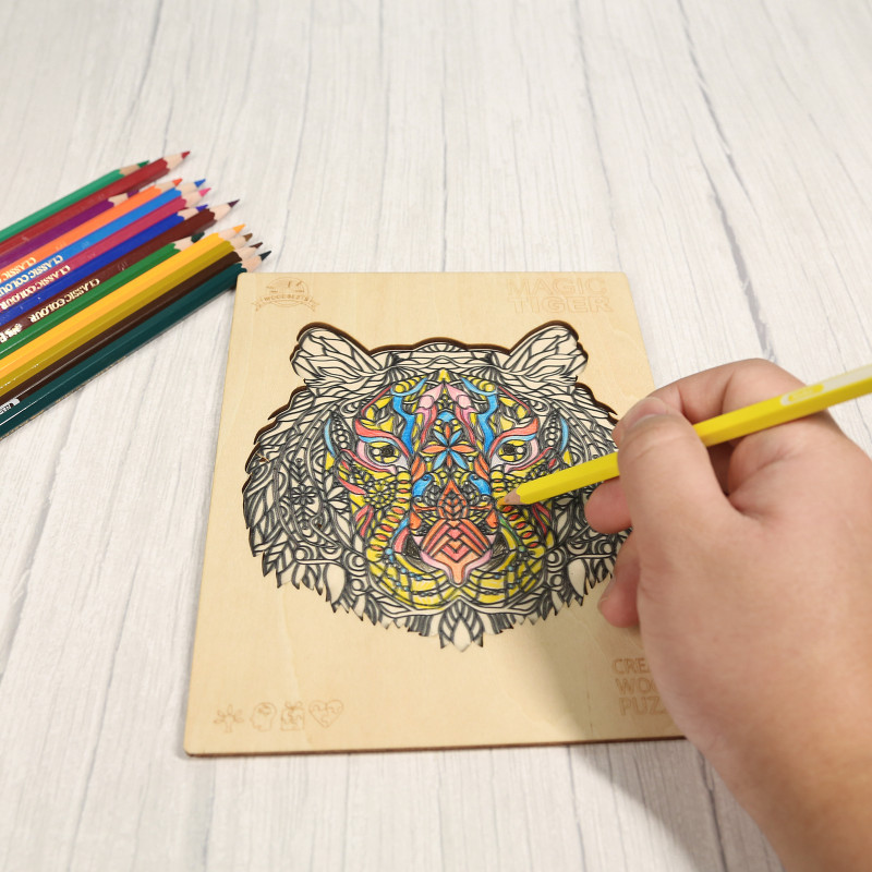 Деревянный 3D пазл Woodbests представляет собой игрушечную головоломку, состоящую из множества маленьких элементов в виде животных, растений, еды, птиц. Данные фигурки двухсторонние, с одной стороны чистое дерево, с другой — раскрашены цветными узорами. Вы можете создать свою идеальную картину в виде льва, совы, котика и других сюжетов и мультипликационных героев. 3D пазл поставляется в красивой деревянной коробке. Думаете, что подарить на праздник — возьмите с собой развивающую игру, в которой погрязнут вместе с детьми и взрослые. Настольная игра развивает интеллект, мышление, внимательность, логику, моторику и прочие навыки. Отбросьте ТВ, приставки, телефоны и прочие цифровые гаджеты — соберите семейный тотем в виде мудрой морской черепахи, украсьте детскую, гостиную. Собранный пазл из дерева является декором в интерьере, подарком своими руками. После длительных каникул надо пробудить мозговую активность, развивашка в формате игры будет прекрасным началом.