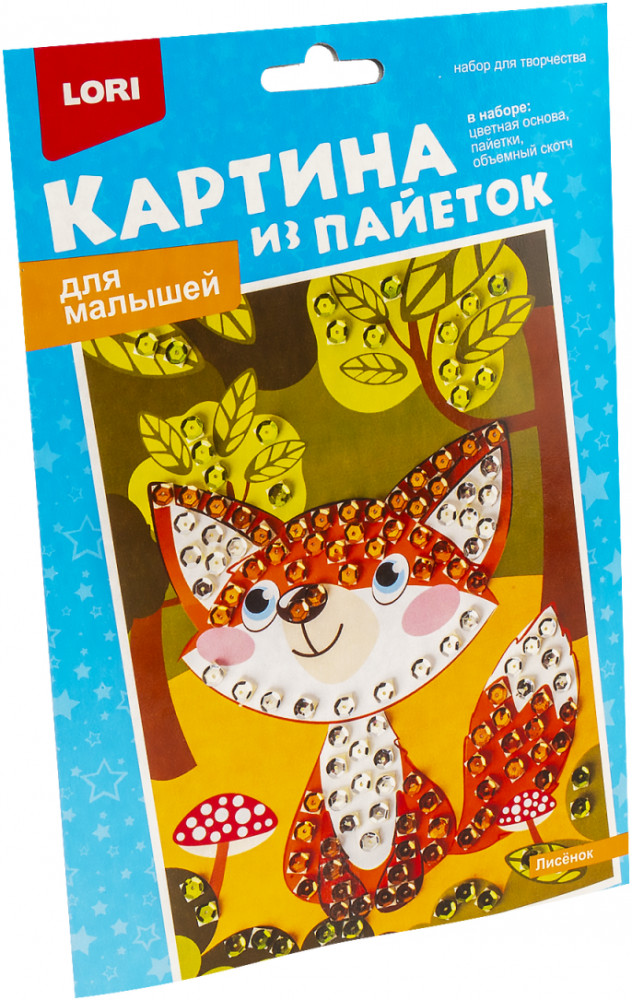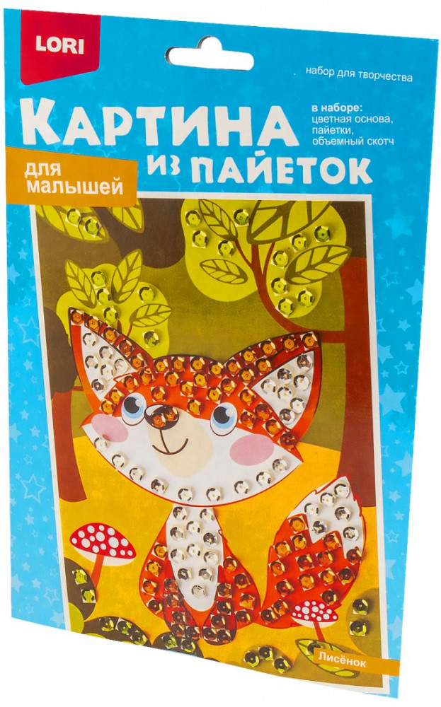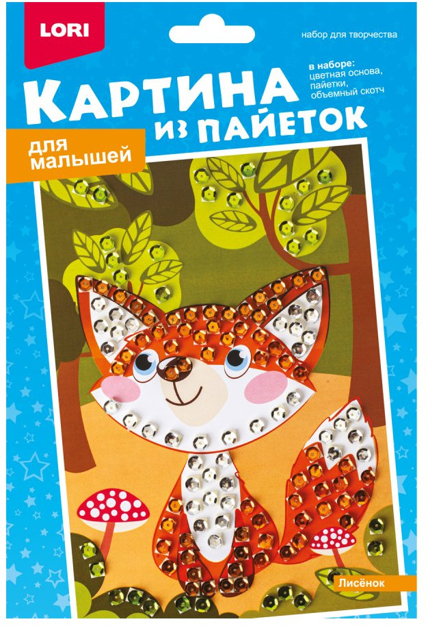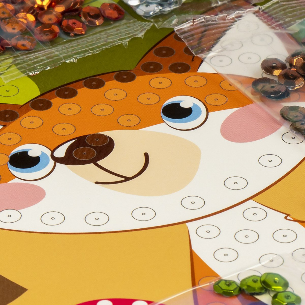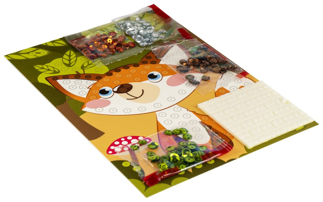 Комплектация: цветная картонная основа А5 формата, пайетки-4цвета, объёмный скотч.