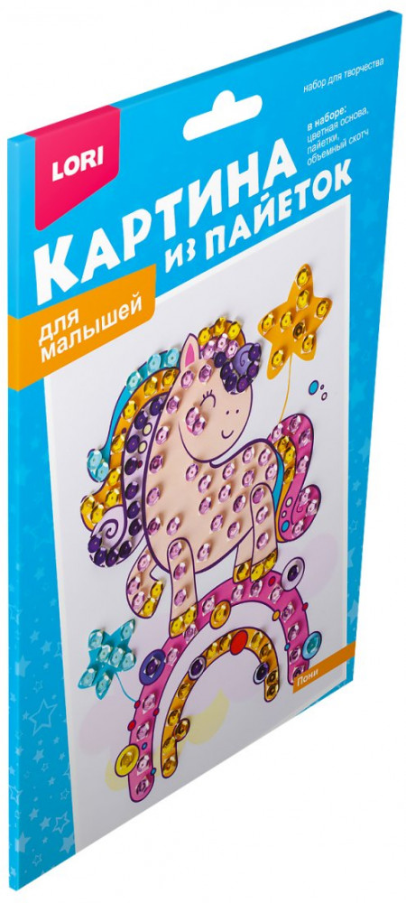Комплектация: цветная картонная основа А5 формата, пайетки-4цвета, объёмный скотч.
