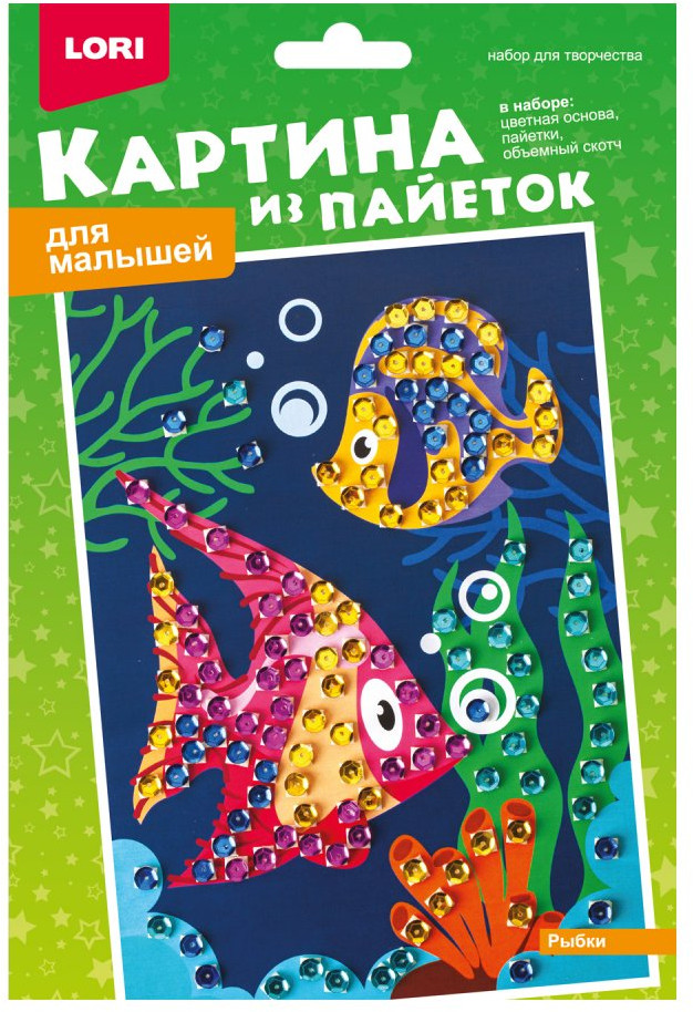 Комплектация: цветная картонная основа А5 формата, пайетки-4цвета, объёмный скотч.