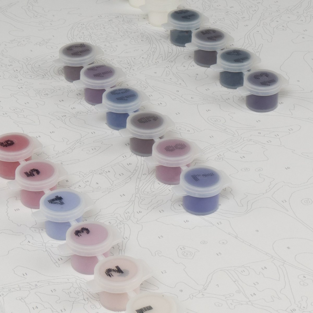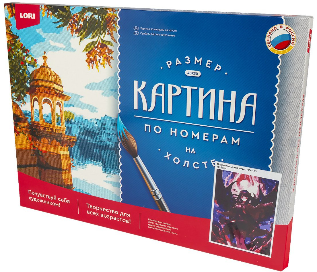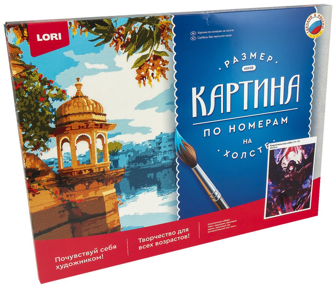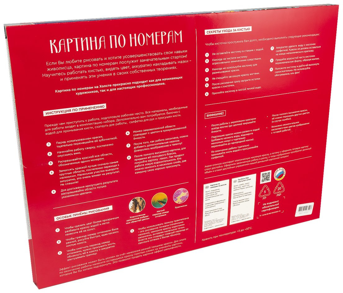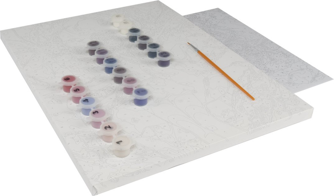 Набор для творчества в технике «рисование по номерам». Контур будущего изображение нанесен на холст, который натянут на подрамник. Каждый цвет пронумерован, в комплекте прилагаются акриловые краски и кисть — все, что необходимо для творческой работы. Останется добавить фантазию и усидчивость, и результат будет вас восхищать!