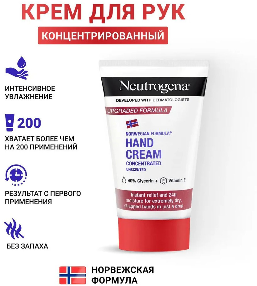Neutrogena Крем для рук увлажняющий без запахаВ данный момент этот товар отсутствует в продаже. Возможно, у нас найдется аналогичный или похожий товар здесь. Концентрированный крем для рук «Норвежская Формула» от Neutrogena это концентрированная формула без аромата для очень сухой кожи с 40% глицерином и витамином Е. Уникальный состав крема мгновенно напитает клетки живительной влагой. Норвежская формула увлажняющего крема для рук обеспечивает мгновенное облегчение для очень сухой, потрескавшейся кожи всего за одну каплю. Насыщенный состав (40% глицерина и витамин Е), который дарит вашим рукам защиту и уход. Интенсивно увлажняет и питает сухую, очень сухую, чувствительную и поврежденную кожи рук. |