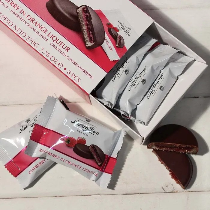 Anthon Berg Конфеты шоколадные с марципаном « Малина в апельсиновом ликёре»