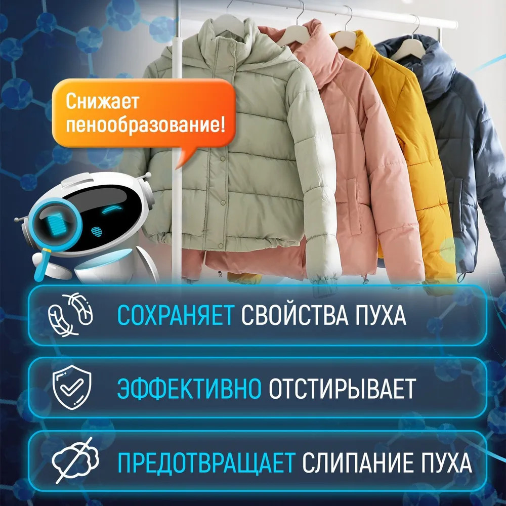 Покупаю второй раз. Для пуховиков самое то. Отстирывает и отлично, вымывается полностью, не оставляет белесых разводов, сохраняет цвет