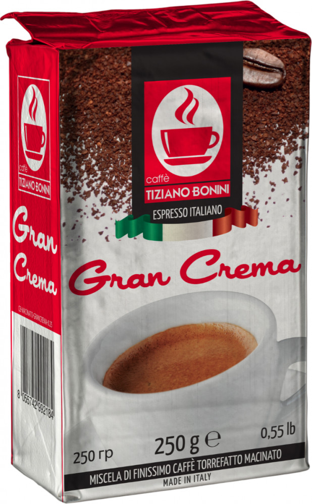 Tiziano Bonini Кофе молотый «Gran Crema»В данный момент этот товар отсутствует в продаже. Возможно, у нас найдется аналогичный или похожий товар здесь. Gran crema был создан, чтобы удовлетворить потребности всех тех, кто любит традиции и предпочитает наслаждаться дома кофе, приготовленным с мокко. этот эспрессо, характеризующийся ярко выраженной кремовой пенкой, имеет полный и насыщенный вкус. ноты какао, молока и лесного ореха — главные составляющие этого итальянского эспрессо. |
