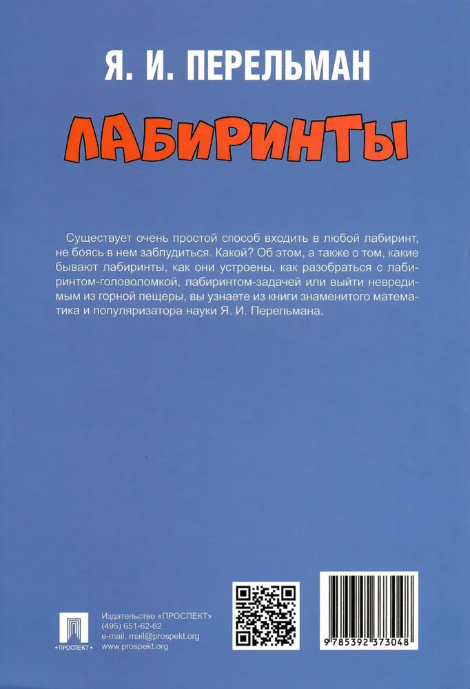 💳 Оплатить за товар можно при получении 🇰🇿 Есть бесплатная доставка по Казахстану от 1 дня 🎁 Копите бонусы с каждой покупки Существует очень простой способ входить в любой лабиринт, не боясь в нем заблудиться. Какой? Об этом, а также о том, какие бывают лабиринты, как они устроены, как разобраться с лабиринтом-головоломкой, лабиринтом-задачей или выйти невредимым из горной пещеры, вы узнаете из книги знаменитого математика и популяризатора науки Я. И. Перельмана. |