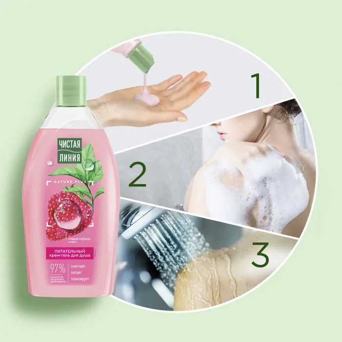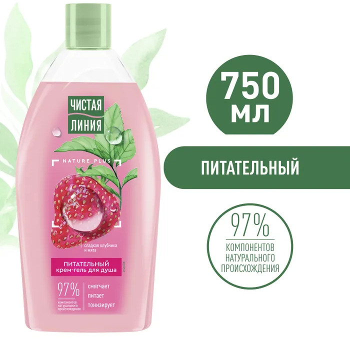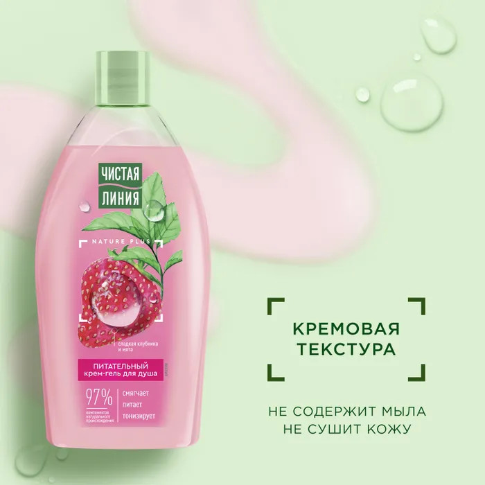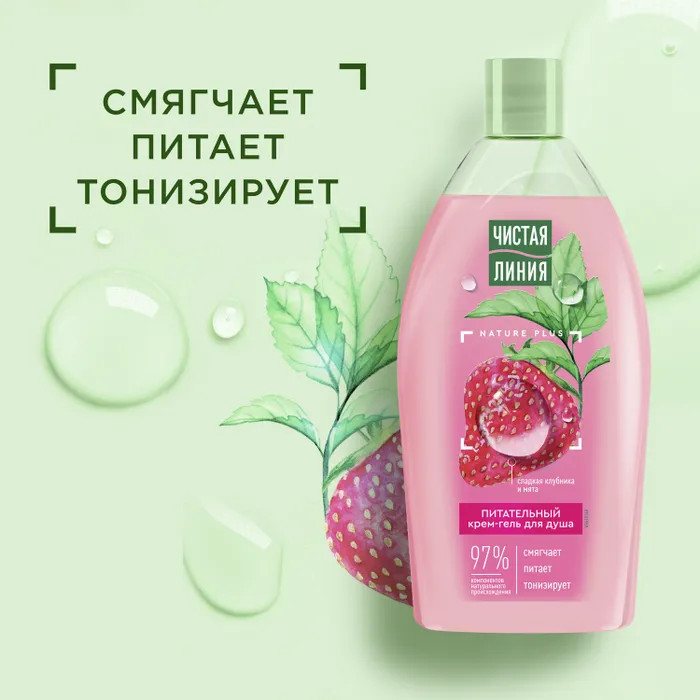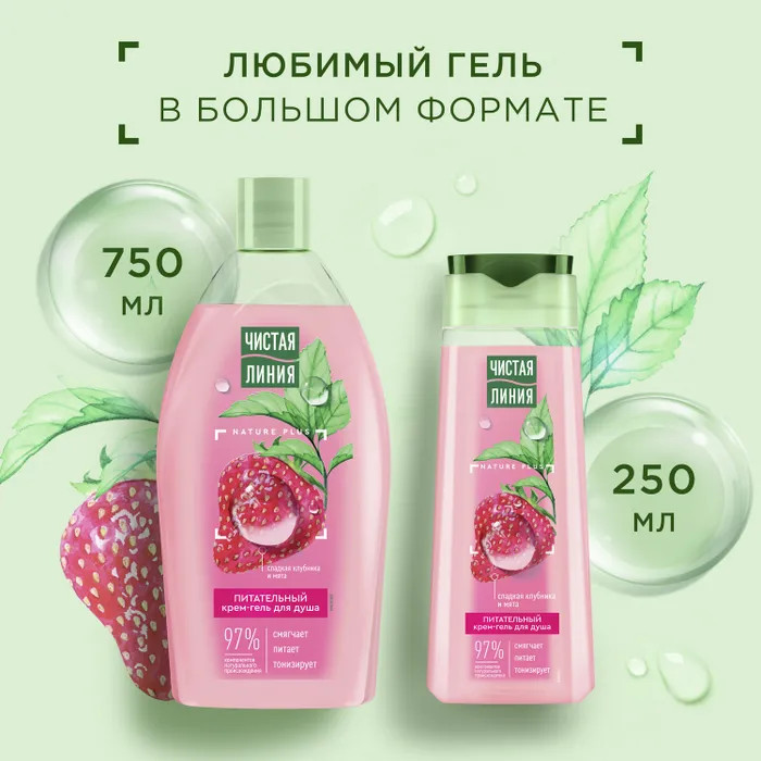 Чистая линия Крем-гель для душа «Сладкая клубника и мята»