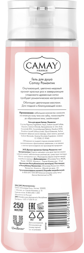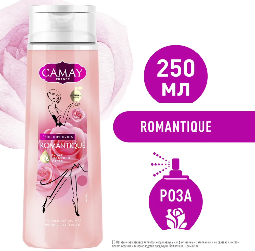 Camay Гель для душа парфюмированный с ароматом французской розы Romantique «Романтик»
