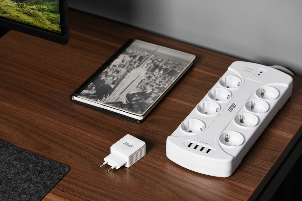 💳 Оплатить за товар можно при получении 🇰🇿 Есть бесплатная доставка по Казахстану от 1 дня 🎁 Копите бонусы с каждой покупки Сетевой фильтр 2E имеет восемь розеток, встроенных под углом 45°, расположенных параллельно в два ряда. Для зарядки мобильных устройств вроде смартфонов, фитнес-трекеров, планшетов предусмотрено четыре разъема USB-A: 3 × 5 В, 3,4 A; 1 × 5 В, 2,4 A. |