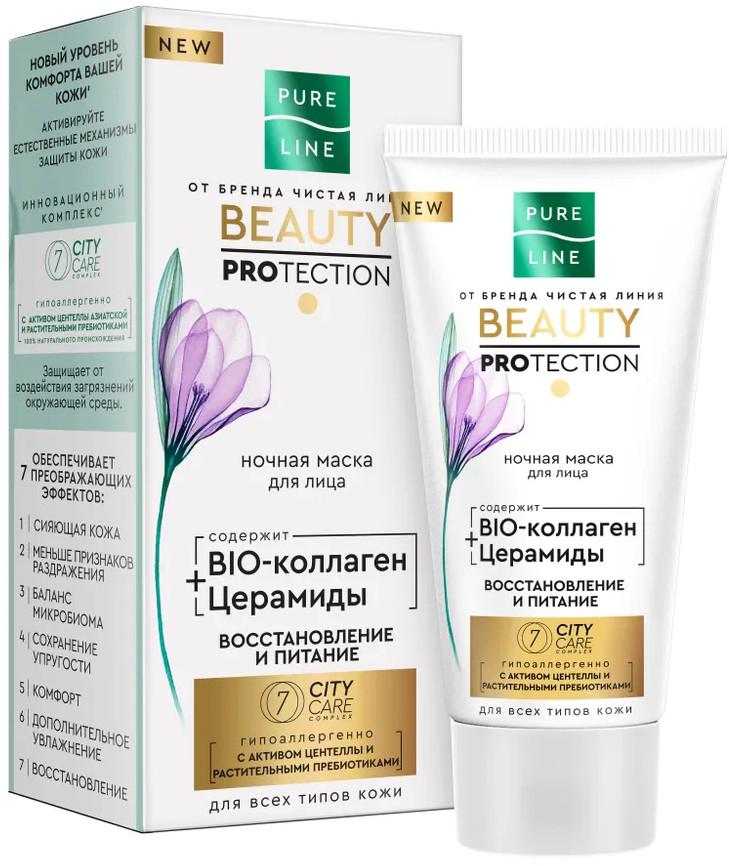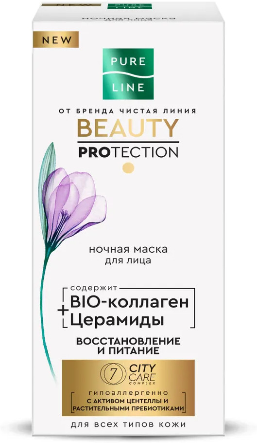 Чистая линия Маска для лица ночная с коллагеном и церамидами «Pure line»