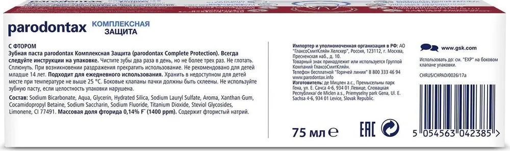 Parodontax Зубная паста для поддержания здоровья полости рта «Комплексная защита»