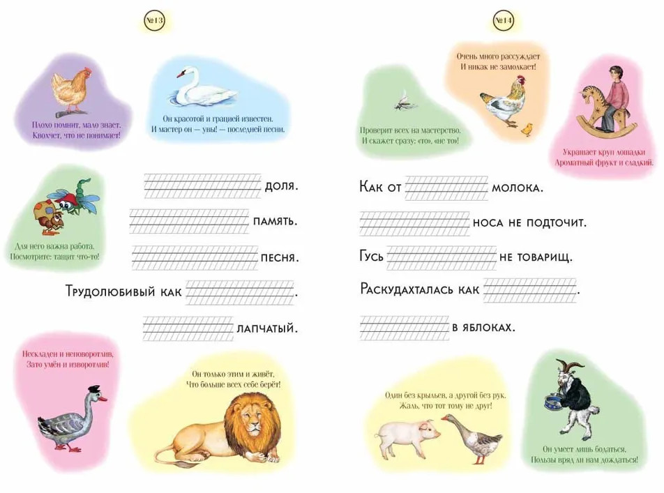 Не как курица лапой. Крылатые выражения на уровне письма. 1 классВ данный момент этот товар отсутствует в продаже. Возможно, у нас найдется аналогичный или похожий товар здесь. Серия: Нескучные уроки Фразеологические обороты делают общение людей ярким и выразительным. В нашем пособии с помощью 14 листов с заданиями ученики живо воспринимают работу с «крылатыми фразами». В заданиях детям предстоит определить название животного, которое пропущено. |