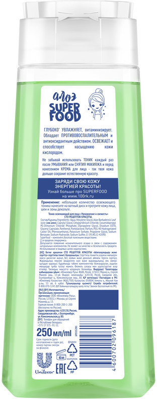 Сто рецептов красоты Тоник для лица освежающий с соком алоэ «Увлажнение и свежесть»