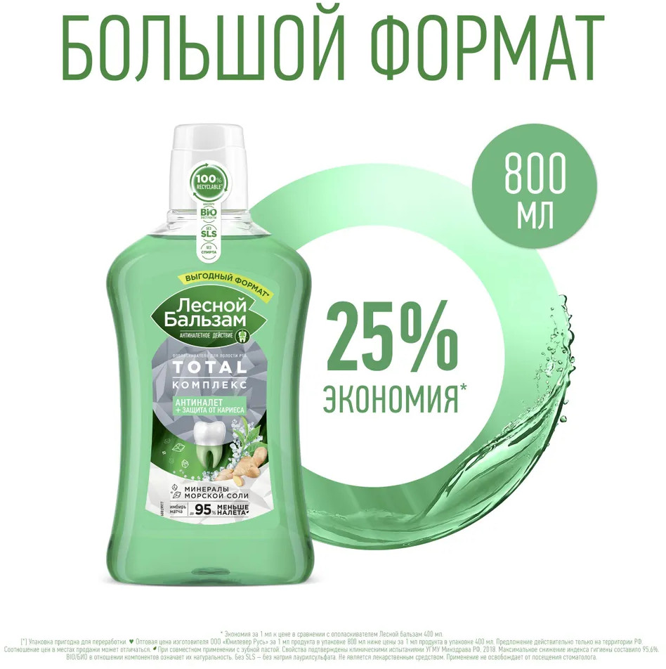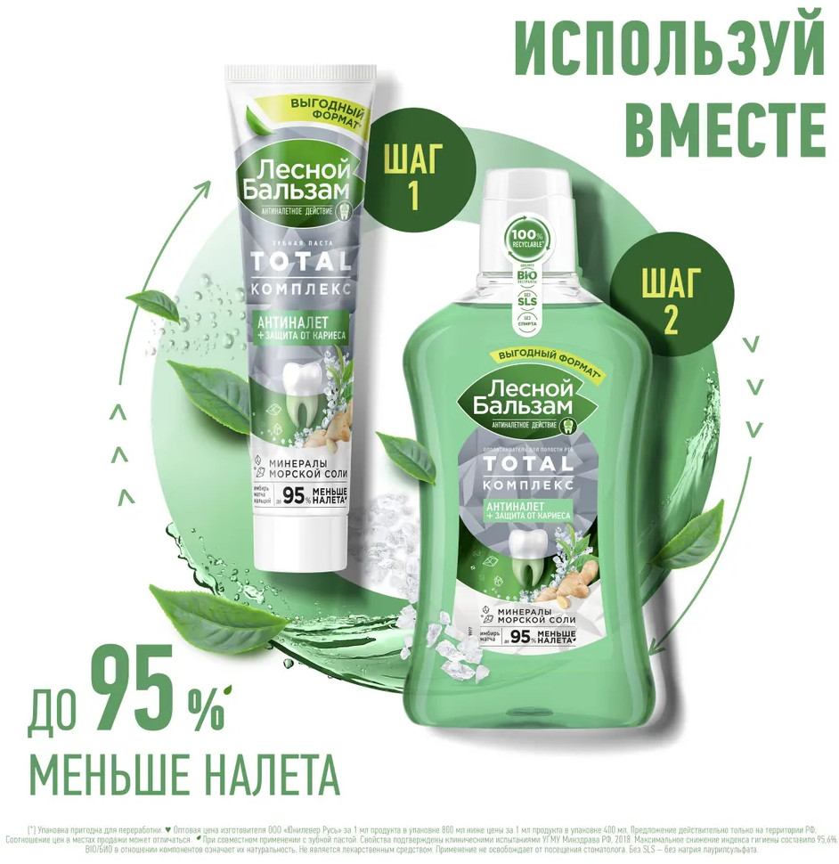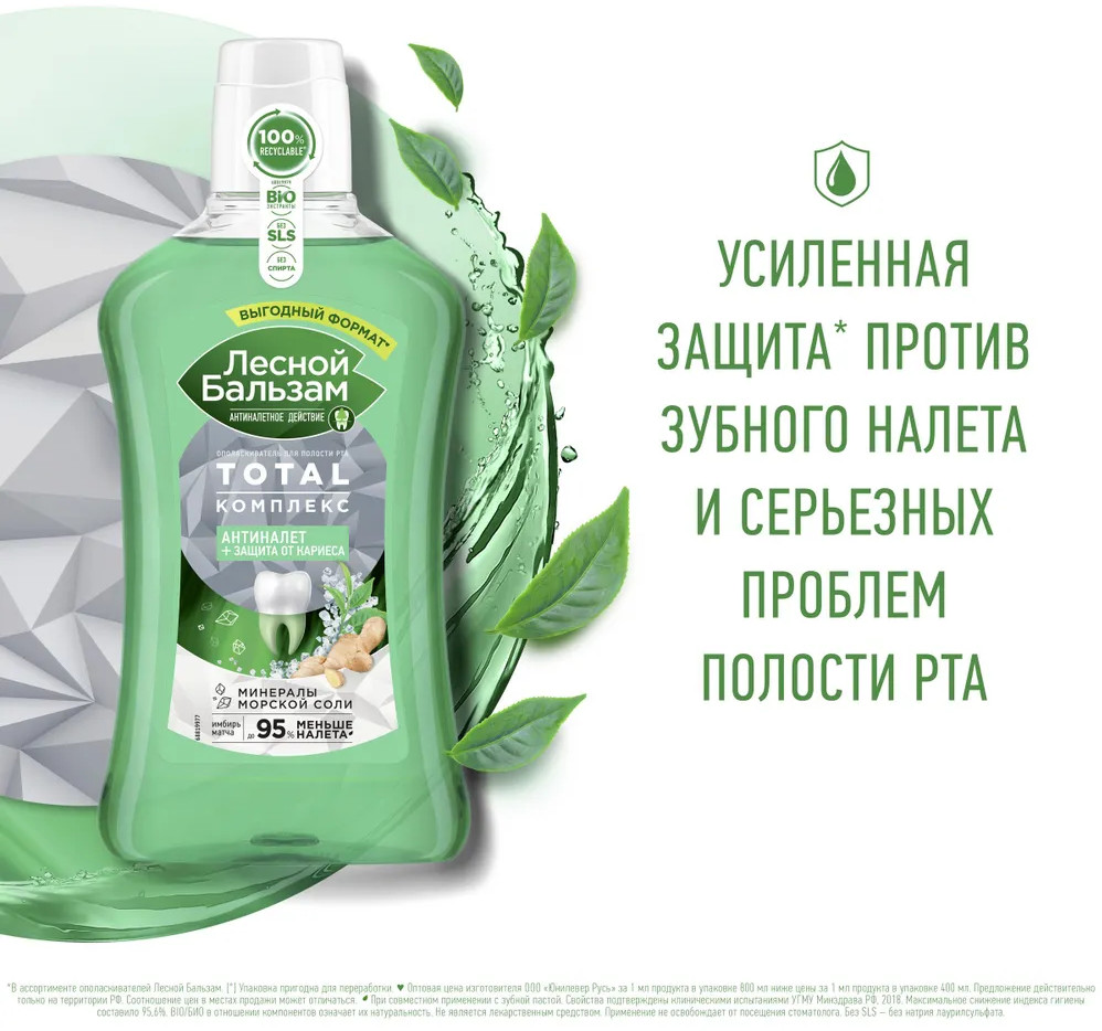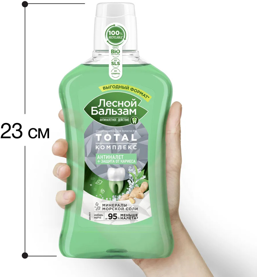 Лесной бальзам Ополаскиватель для полости рта с морской солью, экстрактом имбиря и чаем матча «Антиналёт и защита от кариеса»
