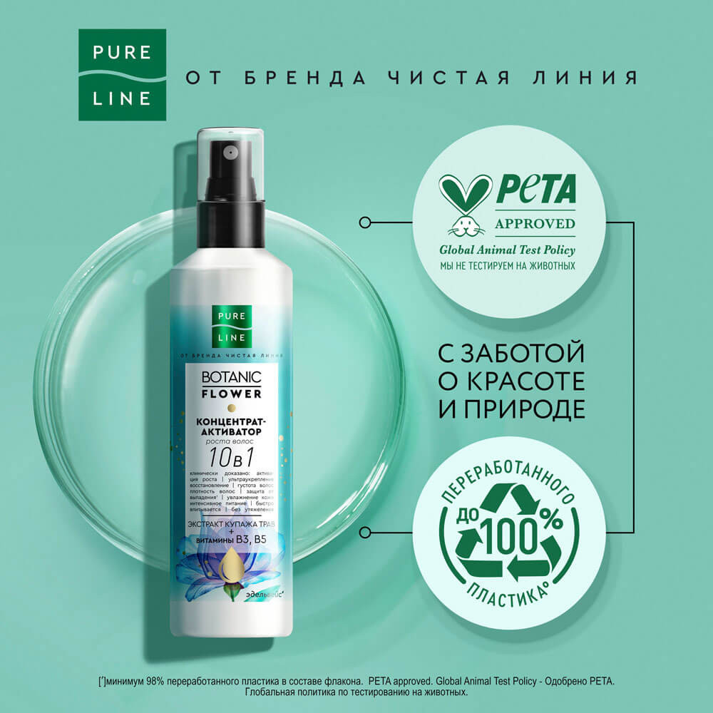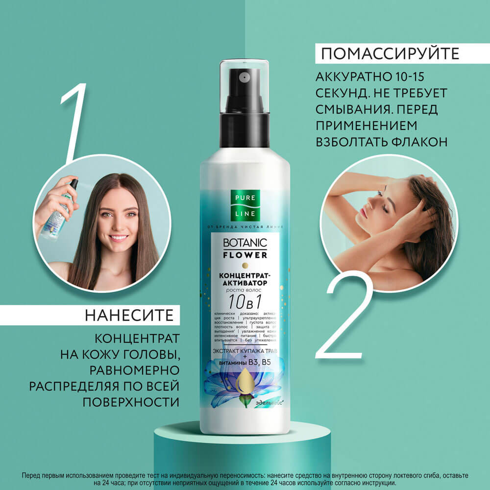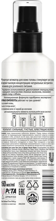 Чистая линия Концентрат-активатор роста волос «10 в 1»-20% +57