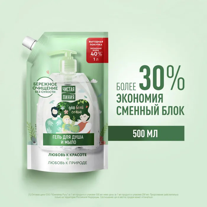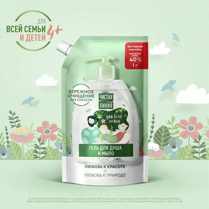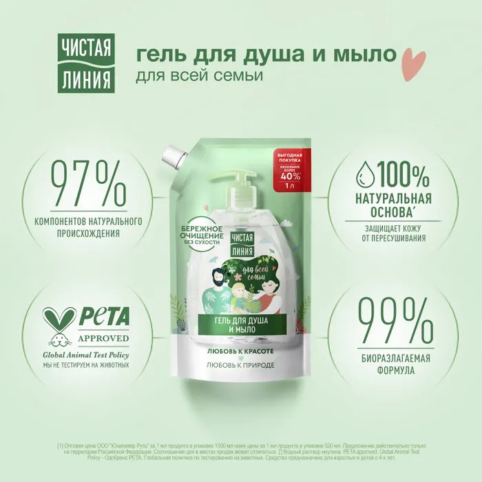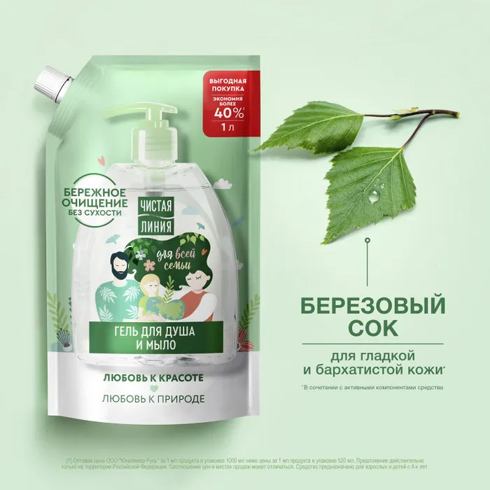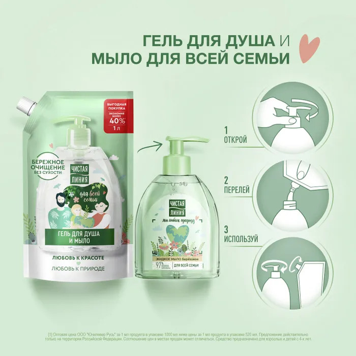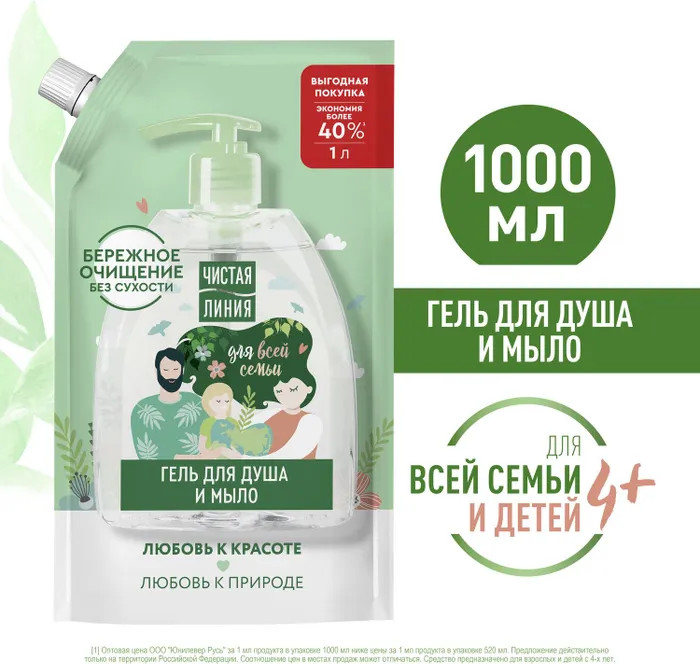Чистая линия Мыло жидкое и гель для душа «2 в 1»
