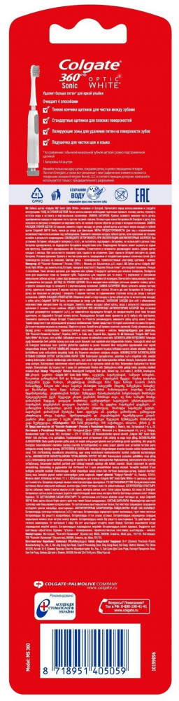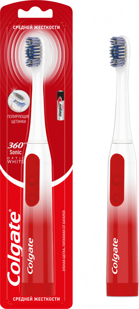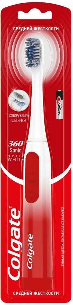 Зубная щетка «Colgate 360 Sonic Opiic White», питаемая от батарей, средней жесткости — это инновационная зубная щетка, которая сочетает в себе уникальную технологию Sonic вибрации с мягкими щетинками c древесным углем для превосходной чистки. Удаляет больше налета для более здоровой полости рта.