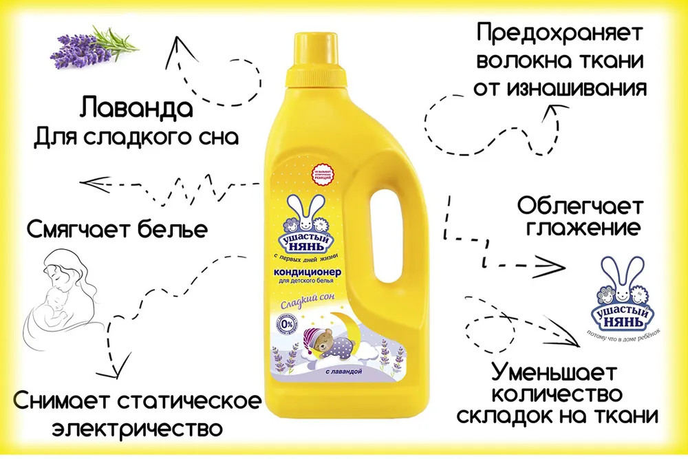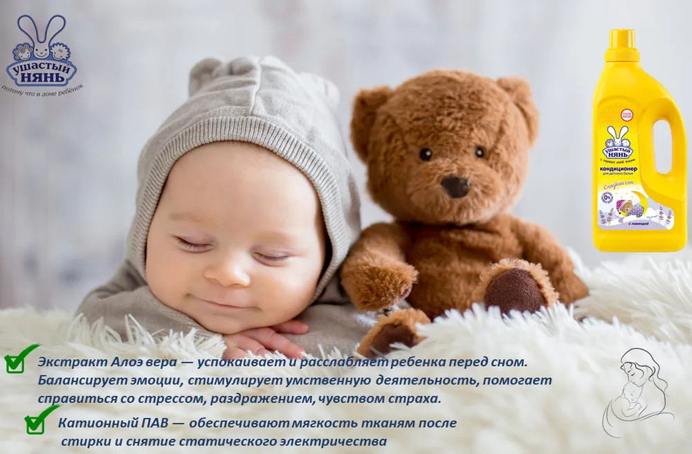 Ушастый нянь Кондиционер для белья детский «Сладкий сон»-20% +22 приятный запах хорошее ополаскивание универсальность