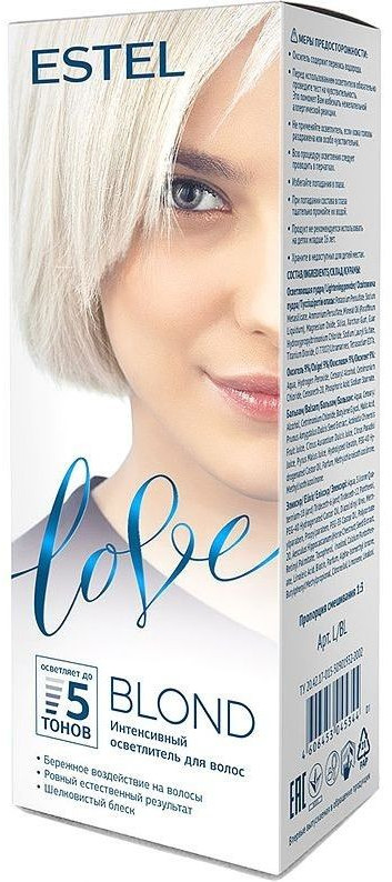 Estel Осветлитель для волос «Blond»В данный момент этот товар отсутствует в продаже. Возможно, у нас найдется аналогичный или похожий товар здесь. Серия: Love Осветлитель для волос интенсивный Estel Love Blond в наборе максимально мягко воздействует на структуру волос, обеспечивает бережное окрашивание и превосходный уход. Крем-краска состоит из натуральных компонентов, таких как масло иланг-иланга и пчелиный воск — гарантируют качественный уход, равномерное нанесение и 100% закрашивание седины. |
